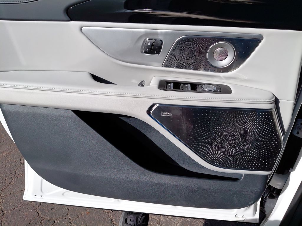 EQUIPMENT GROUP 203A RESERVE III Panoramic Vista Roof w/Powershade, Radio: AM/FM Revel Ultima 3D Audio System, 28 speakers and HD Radio, JET APPEARANCE PACKAGE Body-Color Exterior Elements, wheel arches and sporty front bumper, Wheels: 22 Satin Dark Luster Aluminum, satin chrome inserts, Tires: 255/45R22 AS, Black Exterior Elements, sport fender badge, grille inserts, roof rails, beltline molding, lower door cladding and rear bumper, ENGINE: 2.0L GTDI FHEV 3.37 Axle Ratio, Transmission: CVT Auto Power Split Electric. Lincoln Reserve with White Platinum Metallic Tri-Coat exterior and Medium Light Space Gray interior features a 4 Cylinder Engine with 250 HP at 5500 RPM*.