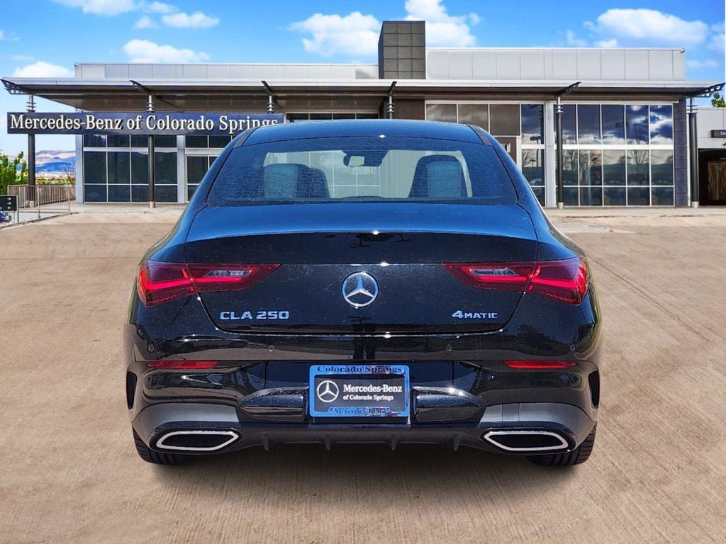 Cosmos Black Metallic 2025 Mercedes-Benz CLA CLA 250 4MATIC® 4MATIC® 8 Speed Dual Clutch 2.0L I4 Turbocharged AMG Line Package, 18" Multi-Spoke Alloy Wheels, 8-Way Power Adjustable Driver & Passenger Seats, All-Weather Mats, Apple CarPlay®/Android Auto®, Heated Front Seats, Heated Steering Wheel, Heated Washer System, Illuminated entry, Memory seat, Power moonroof, Split folding rear seat, Wheels: 19" AMG® Multi-Spoke Black, Winter Package.