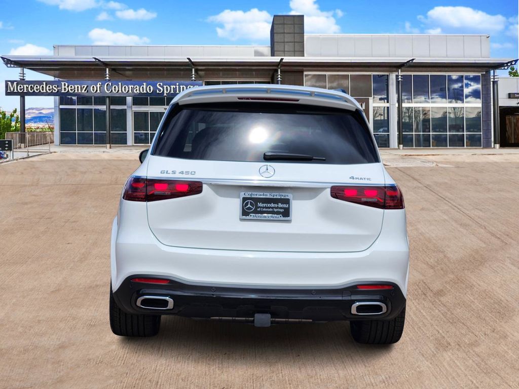 Polar White 2025 Mercedes-Benz GLS GLS 450 4MATIC® 4MATIC® 9-Speed Automatic 3.0L I6 13 Speakers, 5-Zone Climate Control, Active Multicontour Front Seats w/Massage Feature, AMG® Bodystyling, AMG® Brushed Stainless Steel Sports Pedals, AMG® Floor Mats, AMG® Line Exterior, AMG® Rear Apron, AMG® Side Skirts in Body Color, AMG® Sport 3-Twin-Spoke Steering Wheel, Dark Chrome Grille w/4 Slats, Exclusive Trim Package, Front and Rear Flared Wheel Arches in Body Color, Heated Rear Seats, Heated Steering Wheel, High-Gloss Black Elements, Illuminated entry, Large Front Brake System, Leather Upholstery, Matte Black Roof Rails, Night Package, Power moonroof: Panorama, Rapid Heating Front Seats, Roof Spoiler, Trailer Hitch, Wheels: 21" AMG® Twin 5-Spoke Alloy w/Black Accents.