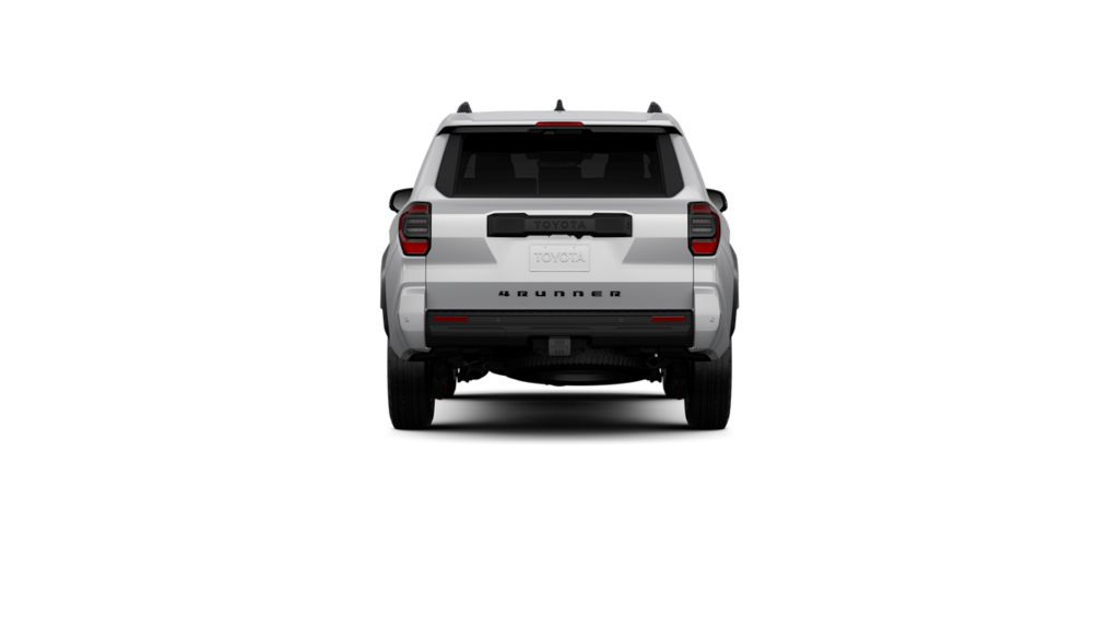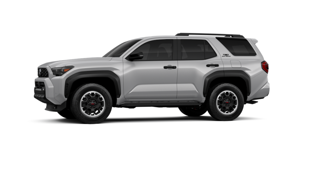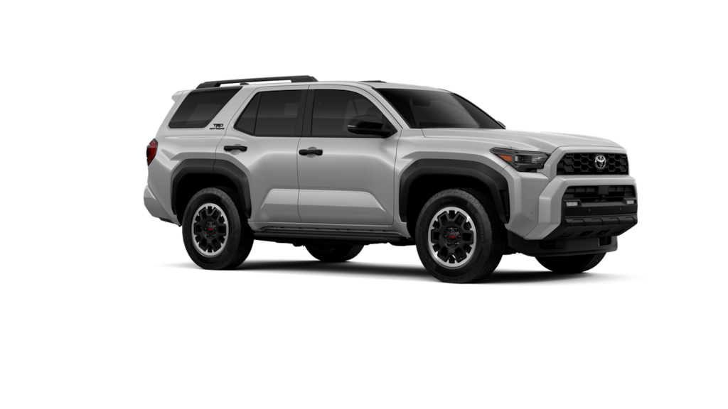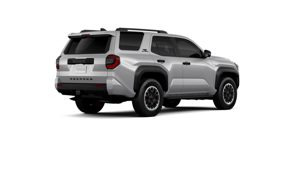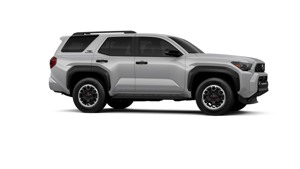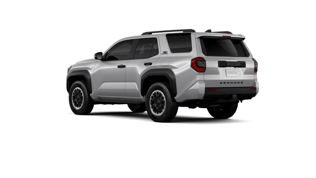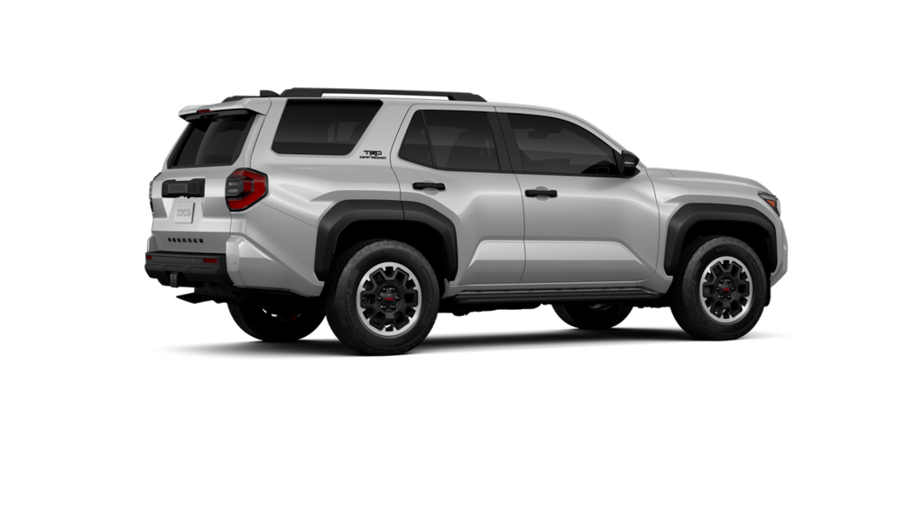- Black honeycomb-style grille, mirror caps, door handles and overfenders; color-keyed rear spoiler; black "trd off road" and "4runner" badges.