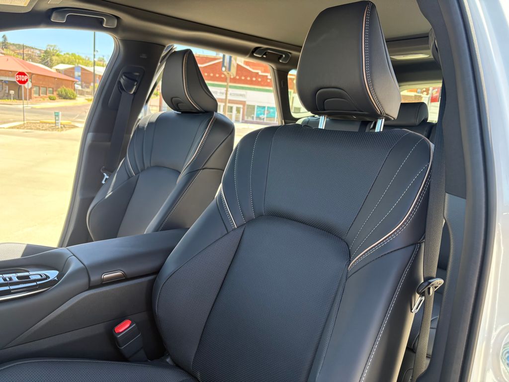 - Leather-trimmed front seats with seatback pockets; 8-way power-adjustable driver's seat with memory function and lumbar support; 8-way power-adjustable front passenger seat.