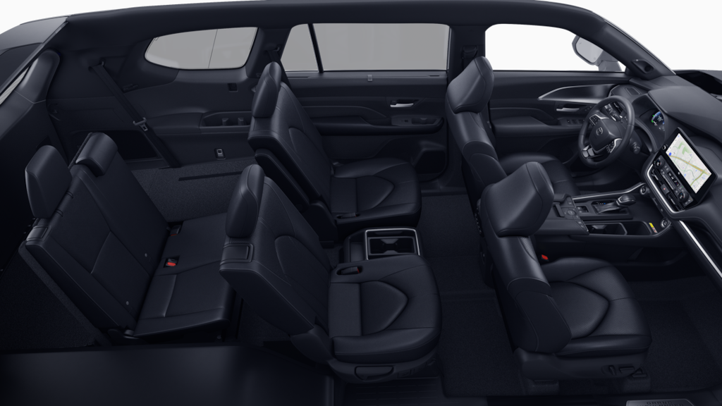 - 7-passenger seating with second-row fold-down captain's chairs and fold-down inboard armrests, adjustable headrests and two cup holders mounted on the floor; and 60/40 split, fold-down third-row seats with sliding headrests and recline function.