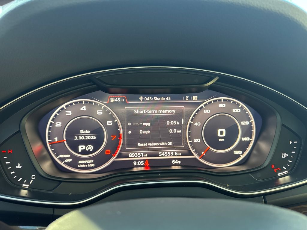 Cold Weather Package (All-Weather Floor Mats, Heated Rear Seats, and Heated Steering Wheel), Convenience Package (Audi Advanced Key, Audi Pre Sense Rear, Audi Side Assist, Auto-Dimming Power Folding Exterior Mirrors, Driver Seat Memory, and SiriusXM All Access Service), Convenience Plus Package (Audi Phone Box), Premium Plus Package (Audi Connect PRIME & PLUS, Audi Virtual Cockpit, Front Door Sills w/Aluminum Inlay, Leatherette Covered Center Console & Door Armrests, LED Headlights, Panoramic Sunroof, Radio: MMI Navigation Plus w/MMI Touch, USB Charge Ports for Rear Seats, and Wheels: 19" 5-Spoke Dynamic Design Partly Polished), Beige Leather, 10 Speakers, 4-Wheel Disc Brakes, 5.302 Axle Ratio, ABS brakes, Air Conditioning, Alloy wheels, AM/FM radio, Audi Beam-Rings, Audi Guard Cargo Mat, Audi smartphone interface (Apple CarPlay/Android Auto), Auto High-beam Headlights, Auto-dimming Rear-View mirror, Automatic temperature control, Black Privacy Trunk Cover, Brake assist, Bumpers: body-color, Compass, Delay-off headlights, Driver door bin, Driver vanity mirror, Dual front impact airbags, Dual front side impact airbags, Electronic Stability Control, Emergency communication system: Audi connect CARE, Exterior Parking Camera Rear, Four wheel independent suspension, Front anti-roll bar, Front Bucket Seats, Front Center Armrest, Front dual zone A/C, Front fog lights, Front reading lights, Garage door transmitter: HomeLink, Genuine wood console insert, Genuine wood dashboard insert, Genuine wood door panel insert, Heated 8-Way Power Front Bucket Seats, Heated door mirrors, Heated front seats, High intensity discharge headlights: Xenon plus, Illuminated entry, Leather Seating Surfaces, Leather Shift Knob, Leather steering wheel, Low tire pressure warning, Occupant sensing airbag, Outside temperature display, Overhead airbag, Overhead console, Panic alarm, Passenger door bin, Passenger vanity mirror, Power door mirrors, Power driver seat, Power Liftgate, Power passenger seat, Power steering, Power windows, Radio data system, Radio: Audi Sound System w/7" Display, Rain sensing wipers, Rear air conditioning, Rear anti-roll bar, Rear fog lights, Rear reading lights, Rear seat center armrest, Rear window defroster, Rear window wiper, Remote keyless entry, Roof rack, Security system, Speed control, Speed-sensing steering, Speed-Sensitive Wipers, Split folding rear seat, Spoiler, Steering wheel mounted audio controls, Tachometer, Telescoping steering wheel, Tilt steering wheel, Traction control, Trailer Hitch, Trip computer, Turn signal indicator mirrors, USB Cables, Variably intermittent wipers, Wheels: 18" 5-Arm-Turbine Design, and Wheels: 20" 5-Segment-Spoke Design.