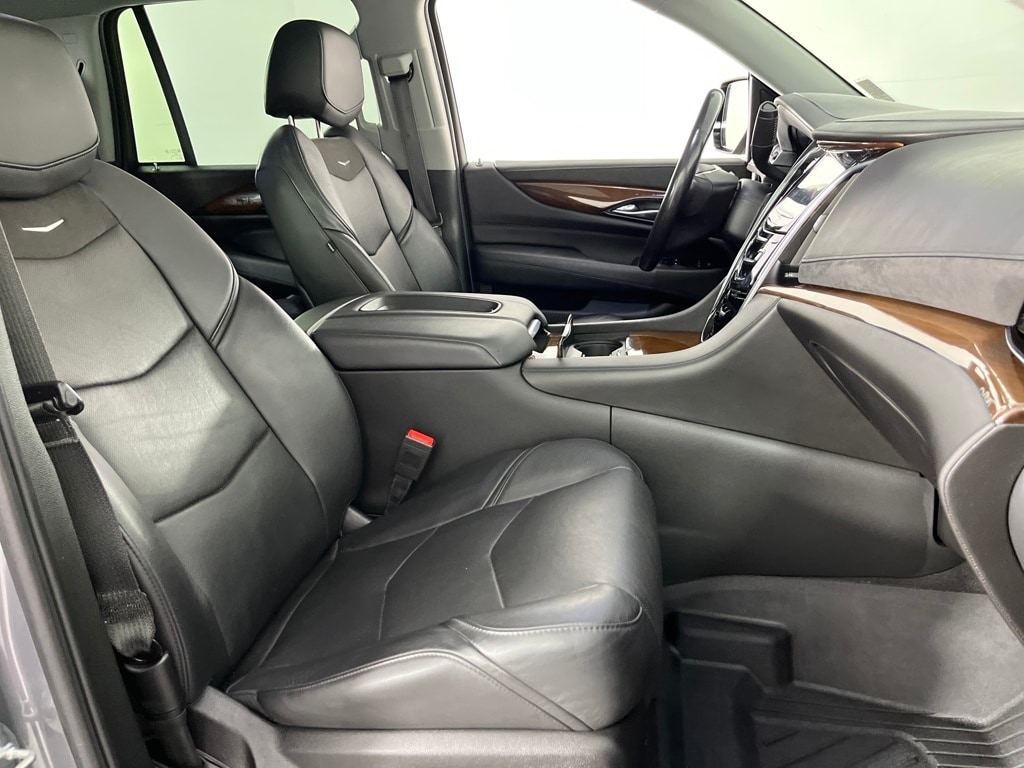 ASSIST STEPS, POWER-RETRACTABLE, RUNNING SIDE BOARD with LED lighting, CADILLAC USER EXPERIENCE WITH EMBEDDED NAVIGATION AM/FM stereo with 8 diagonal color information display featuring touch response, haptic feedback, gesture recognition, Natural Voice Recognition, Phone Integration for Apple CarPlay® and Android Auto® capability for compatible phone, Connected Apps and Teen Driver. Five USB ports, including one in the articulating storage door/bin and auxiliary audio port (STD), ENGINE, 6.2L V8 WITH ACTIVE FUEL MANAGEMENT Spark Ignition Direct Injection (SIDI) and Variable Valve Timing (VVT), includes aluminum block construction (420 hp [313.2 kW] @ 5600 rpm, 460 lb-ft of torque [621 N-m] @ 4100 rpm) (STD), TRANSMISSION, 10-SPEED AUTOMATIC electronically controlled with overdrive, tow/haul mode and tap up/tap down shifting (STD). Cadillac Premium Luxury with Satin Steel Metallic exterior and Jet Black interior features a 8 Cylinder Engine with 420 HP at 5600 RPM*.