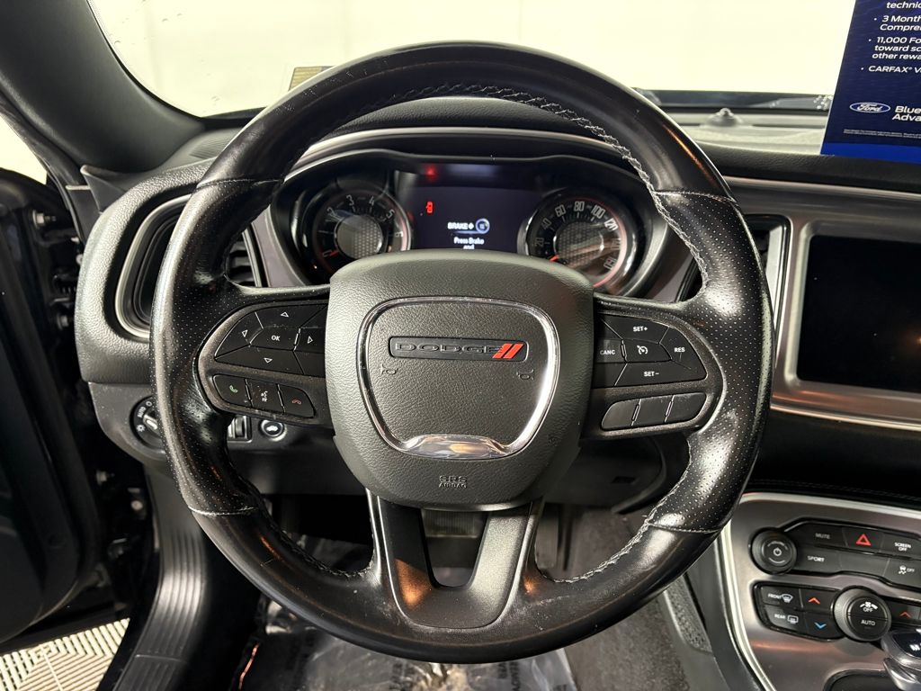Under the hood, the Challenger SXT is powered by a robust Pentastar 3.6L V-6 DOHC engine, delivering an impressive 303 horsepower paired with a TorqueFlite 8-speed automatic transmission. This combination ensures smooth acceleration and responsive handling, perfect for both city driving and spirited highway cruising.