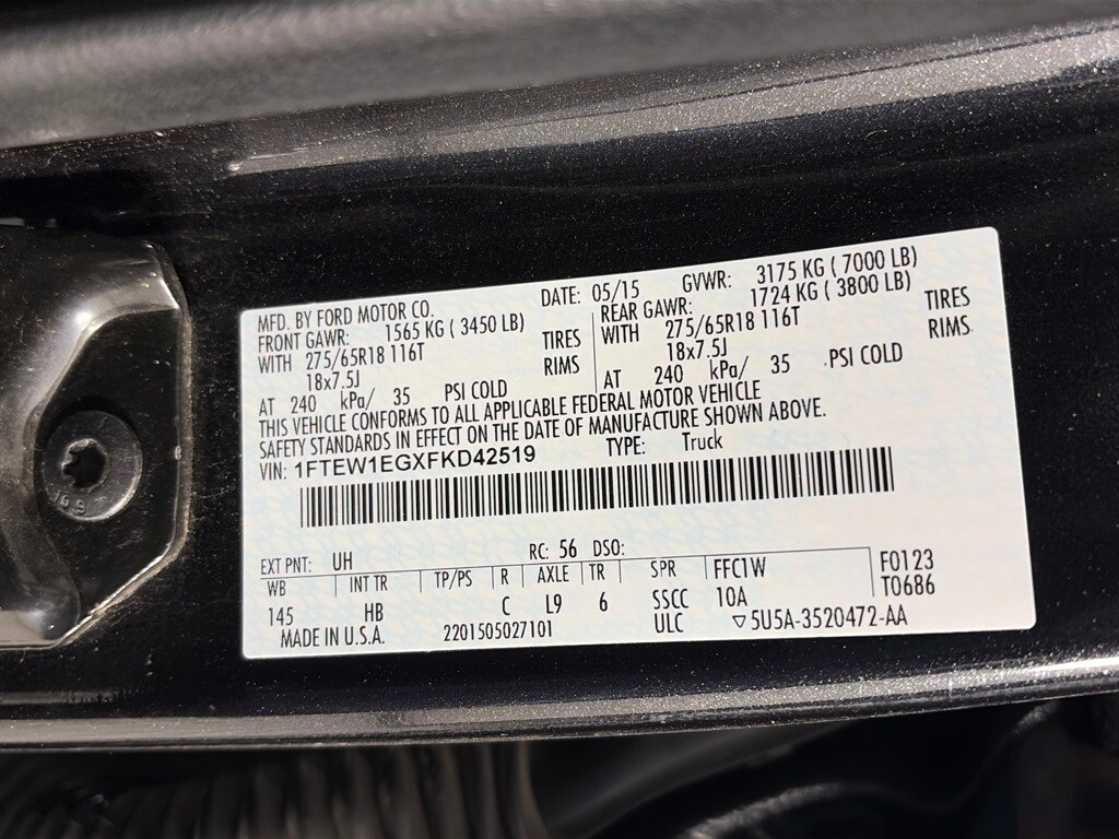 LARIAT SPORT APPEARANCE PACKAGE unique interior finish, Box Side Decal, Single-Tip Chrome Exhaust, Accent-Color Front Bumper w/Body-Color End Caps, body-color rear bumpers, Wheels: 18 6-Spoke Machined-Aluminum, magnetic painted pockets, Accent-Color Angular Step Bars, Accent-Color 3-Bar Style Grille, accent-color surround and black mesh, EQUIPMENT GROUP 501A MID Remote Start System, LED Side-Mirror Spotlights, high-intensity LED security approach lamps, Reverse Sensing System, Power Glass Sideview Mirr w/Body-Color Skull Caps, Power-folding, Heated, turn signal, memory, auto-dimming feature(drivers side) and high-intensity LED security approach lamps, Universal Garage Door Opener, Blind Spot Information System (BLIS), cross-traffic alert sensor in taillamp, 110V/400W Outlet, ENGINE: 3.5L V6 ECOBOOST 3.31 Axle Ratio, GVWR: 7,000 lbs Payload Package, VOICE-ACTIVATED NAVIGATION SiriusXM Traffic and Travel Link in the 48 Contiguous United States and D.C, Note: Subscriptions to all SiriusXM services are sold by SiriusXM, Subscriptions are governed by SiriusXM Customer Agreement; see www.siriusxm.com, TAILGATE STEP W/TAILGATE LIFT ASSIST. Ford Lariat with Tuxedo Black Metallic exterior and Black interior features a V6 Cylinder Engine with 365 HP at 5000 RPM*.