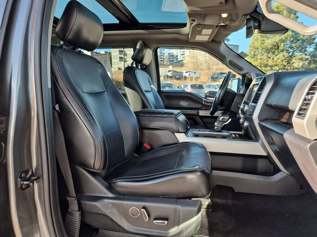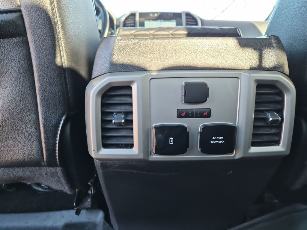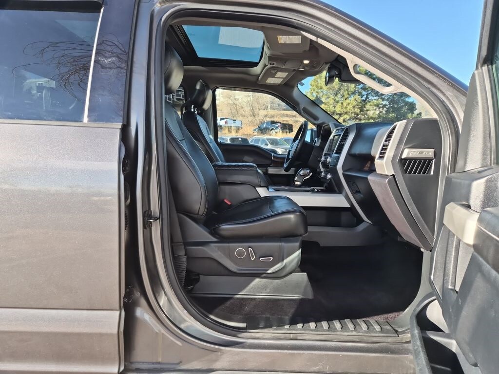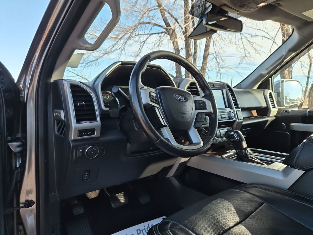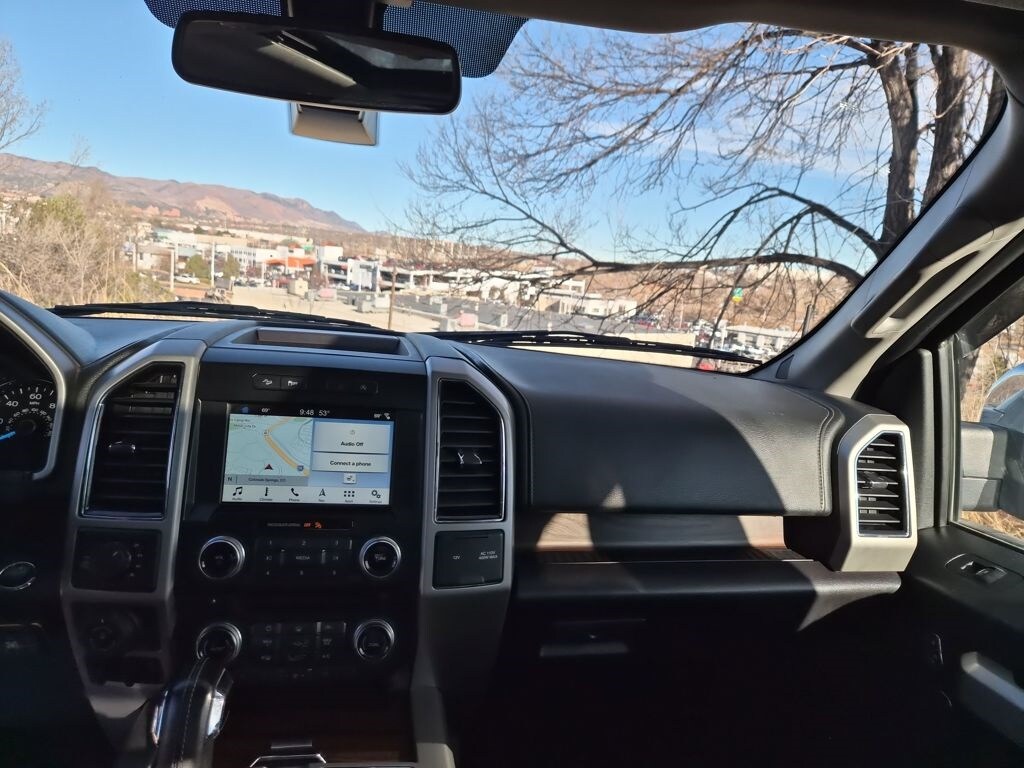 Equipment Group 502A Luxury (110V/400W Outlet, 2nd Row Heated Seats, Auto High Beam w/Rain-Sensing Windshield Wipers, BLIS Blind Spot Information System, Heated Steering Wheel, Leather-Trimmed Bucket Seats, LED Side-Mirror Spotlights, Power Tilt/Telescoping Steering Column w/Memory, Quad Beam LED Headlamps & Taillamps, Radio: Sony Single CD w/HD & SiriusXM Satellite, Remote Start System w/Remote Tailgate Release, Reverse Sensing System, SYNC Connect, Universal Garage Door Opener, and Voice-Activated Navigation), FX4 Off-Road Package (4x4 FX4 Off-Road Bodyside Decal, Hill Descent Control, and Off-Road Tuned Front Shock Absorbers), GVWR: 6,500 lbs Payload Package, Lariat Chrome Appearance Package (Chrome 3-Bar Style Grille w/Chrome Surround, Chrome Angular Step Bars, Chrome Door & Tailgate Handles w/Body-Color Bezel, Chrome Skull Caps on Exterior Mirrors, Single-Tip Chrome Exhaust, and Wheels: 18" Chrome-Like PVD), Trailer Tow Package (Auxiliary Transmission Oil Cooler, Class IV Trailer Hitch Receiver, Engine Oil Cooler, Pro Trailer Backup Assist, and Upgraded Front Stabilizer Bar), 4WD, 18" Machined-Aluminum Wheels, 3.55 Axle Ratio, 4-Wheel Disc Brakes, 7 Speakers, ABS brakes, Adaptive Cruise Control & Collision Warning, Adjustable pedals, Air Conditioning, Alloy wheels, AM/FM radio: SiriusXM, Auto-dimming door mirrors, Auto-dimming Rear-View mirror, Automatic temperature control, Brake assist, Bumpers: chrome, CD player, Compass, Delay-off headlights, Driver door bin, Driver vanity mirror, Dual front impact airbags, Dual front side impact airbags, Electronic Stability Control, Exterior Parking Camera Rear, Front anti-roll bar, Front Center Armrest w/Storage, Front dual zone A/C, Front fog lights, Front reading lights, Front wheel independent suspension, Fully automatic headlights, Heated door mirrors, Heated front seats, Illuminated entry, Integrated Trailer Brake Controller, Leather-Trimmed 40/20/40 Front Seat, Low tire pressure warning, Memory seat, Occupant sensing airbag, Outside temperature display, Overhead airbag, Overhead console, Panic alarm, Passenger door bin, Passenger vanity mirror, Pedal memory, Power door mirrors, Power driver seat, Power Glass Sideview Mirr w/Body-Color Skull Caps, Power passenger seat, Power steering, Power windows, Radio data system, Radio: Single-CD w/SiriusXM Satellite, Rear reading lights, Rear seat center armrest, Rear step bumper, Rear window defroster, Remote keyless entry, Security system, Speed control, Speed-sensing steering, Split folding rear seat, Steering wheel mounted audio controls, SYNC 3, Tachometer, Tailgate Step w/Tailgate Lift Assist, Telescoping steering wheel, Tilt steering wheel, Traction control, Trip computer, Turn signal indicator mirrors, Twin Panel Moonroof, Variably intermittent wipers, Ventilated front seats, Voltmeter, and Wheels: 20" Chrome-Like PVD.
