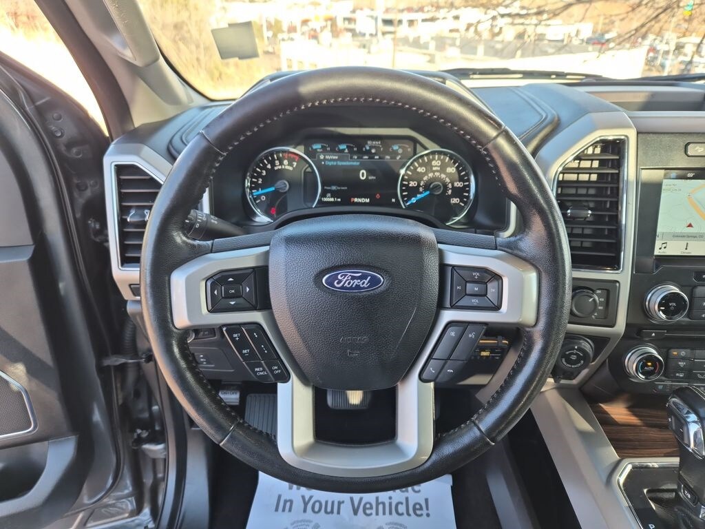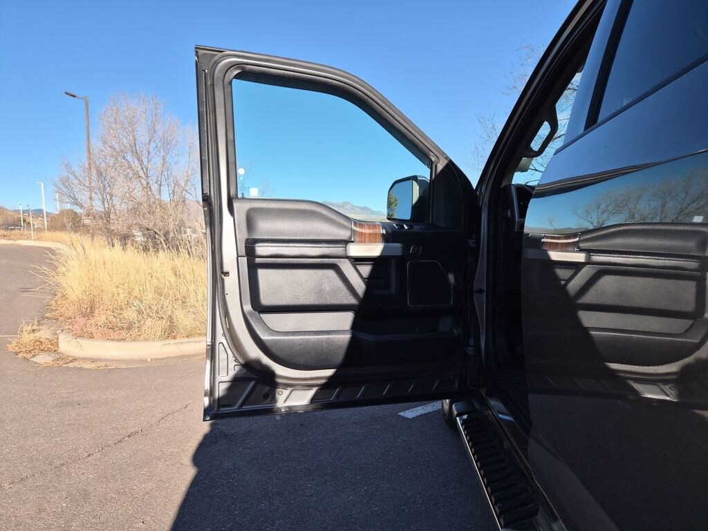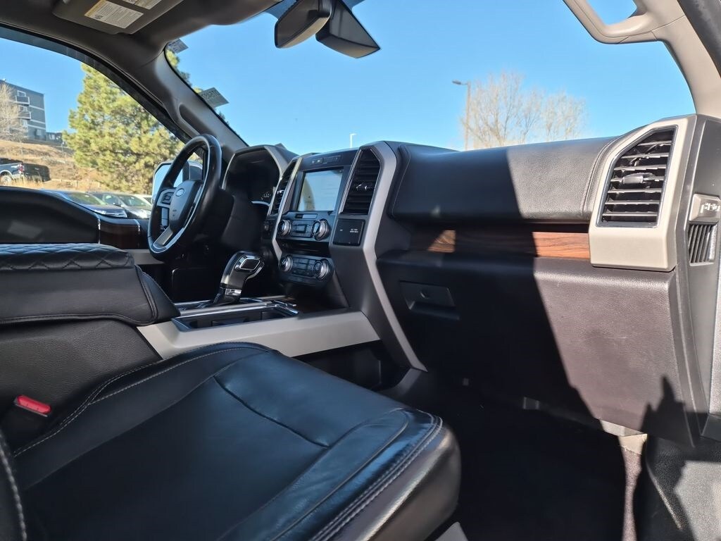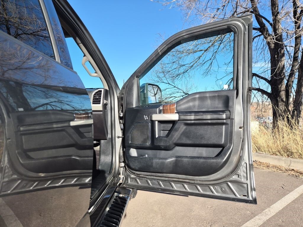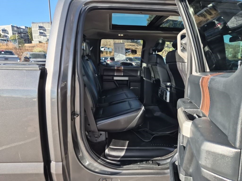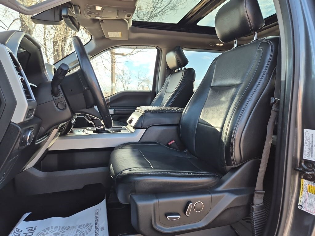 Equipment Group 502A Luxury (110V/400W Outlet, 2nd Row Heated Seats, Auto High Beam w/Rain-Sensing Windshield Wipers, BLIS Blind Spot Information System, Heated Steering Wheel, Leather-Trimmed Bucket Seats, LED Side-Mirror Spotlights, Power Tilt/Telescoping Steering Column w/Memory, Quad Beam LED Headlamps & Taillamps, Radio: Sony Single CD w/HD & SiriusXM Satellite, Remote Start System w/Remote Tailgate Release, Reverse Sensing System, SYNC Connect, Universal Garage Door Opener, and Voice-Activated Navigation), FX4 Off-Road Package (4x4 FX4 Off-Road Bodyside Decal, Hill Descent Control, and Off-Road Tuned Front Shock Absorbers), GVWR: 6,500 lbs Payload Package, Lariat Chrome Appearance Package (Chrome 3-Bar Style Grille w/Chrome Surround, Chrome Angular Step Bars, Chrome Door & Tailgate Handles w/Body-Color Bezel, Chrome Skull Caps on Exterior Mirrors, Single-Tip Chrome Exhaust, and Wheels: 18" Chrome-Like PVD), Trailer Tow Package (Auxiliary Transmission Oil Cooler, Class IV Trailer Hitch Receiver, Engine Oil Cooler, Pro Trailer Backup Assist, and Upgraded Front Stabilizer Bar), 4WD, 18" Machined-Aluminum Wheels, 3.55 Axle Ratio, 4-Wheel Disc Brakes, 7 Speakers, ABS brakes, Adaptive Cruise Control & Collision Warning, Adjustable pedals, Air Conditioning, Alloy wheels, AM/FM radio: SiriusXM, Auto-dimming door mirrors, Auto-dimming Rear-View mirror, Automatic temperature control, Brake assist, Bumpers: chrome, CD player, Compass, Delay-off headlights, Driver door bin, Driver vanity mirror, Dual front impact airbags, Dual front side impact airbags, Electronic Stability Control, Exterior Parking Camera Rear, Front anti-roll bar, Front Center Armrest w/Storage, Front dual zone A/C, Front fog lights, Front reading lights, Front wheel independent suspension, Fully automatic headlights, Heated door mirrors, Heated front seats, Illuminated entry, Integrated Trailer Brake Controller, Leather-Trimmed 40/20/40 Front Seat, Low tire pressure warning, Memory seat, Occupant sensing airbag, Outside temperature display, Overhead airbag, Overhead console, Panic alarm, Passenger door bin, Passenger vanity mirror, Pedal memory, Power door mirrors, Power driver seat, Power Glass Sideview Mirr w/Body-Color Skull Caps, Power passenger seat, Power steering, Power windows, Radio data system, Radio: Single-CD w/SiriusXM Satellite, Rear reading lights, Rear seat center armrest, Rear step bumper, Rear window defroster, Remote keyless entry, Security system, Speed control, Speed-sensing steering, Split folding rear seat, Steering wheel mounted audio controls, SYNC 3, Tachometer, Tailgate Step w/Tailgate Lift Assist, Telescoping steering wheel, Tilt steering wheel, Traction control, Trip computer, Turn signal indicator mirrors, Twin Panel Moonroof, Variably intermittent wipers, Ventilated front seats, Voltmeter, and Wheels: 20" Chrome-Like PVD.