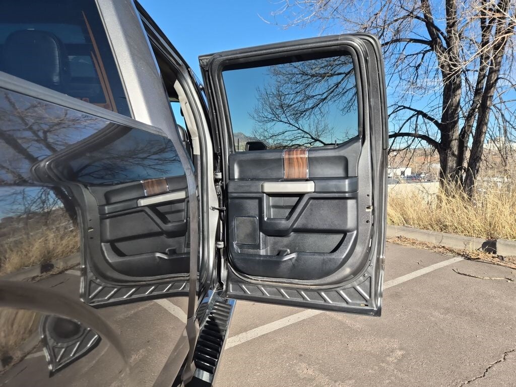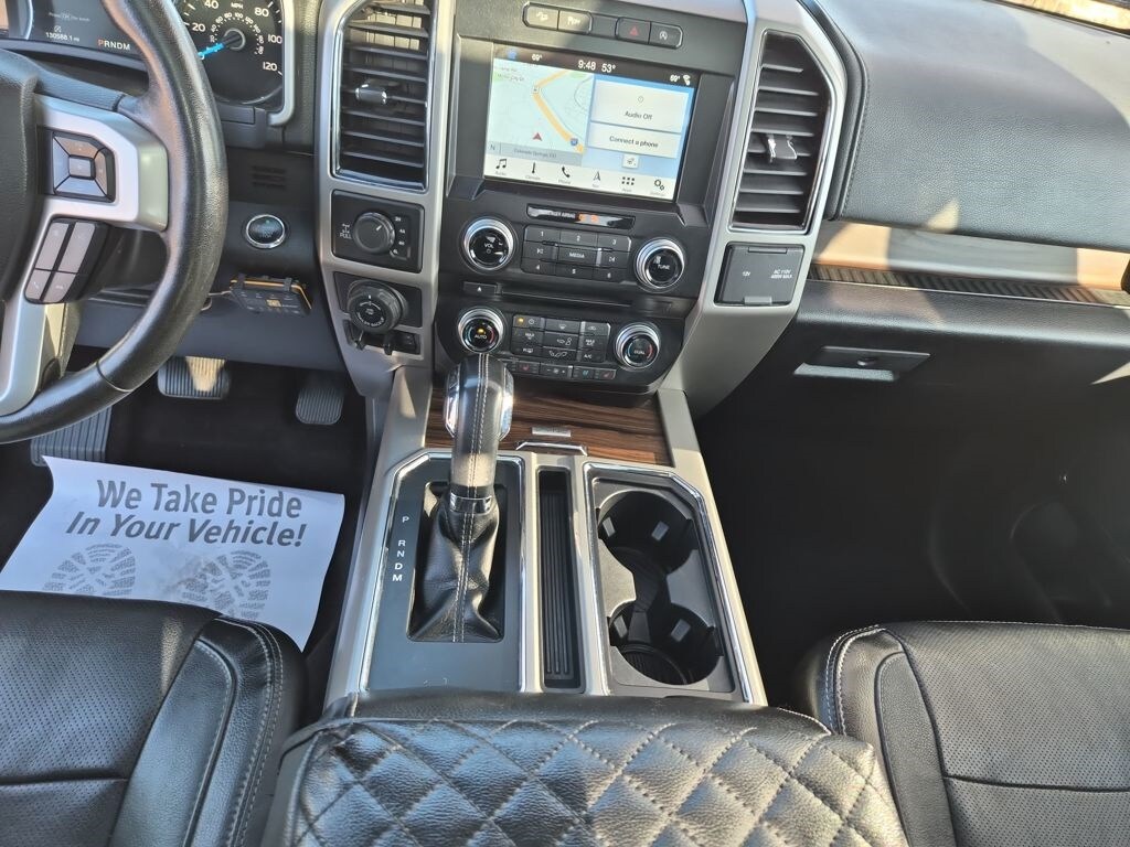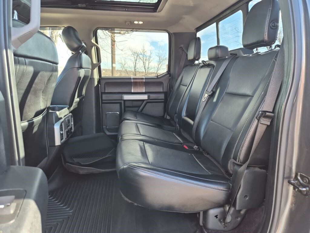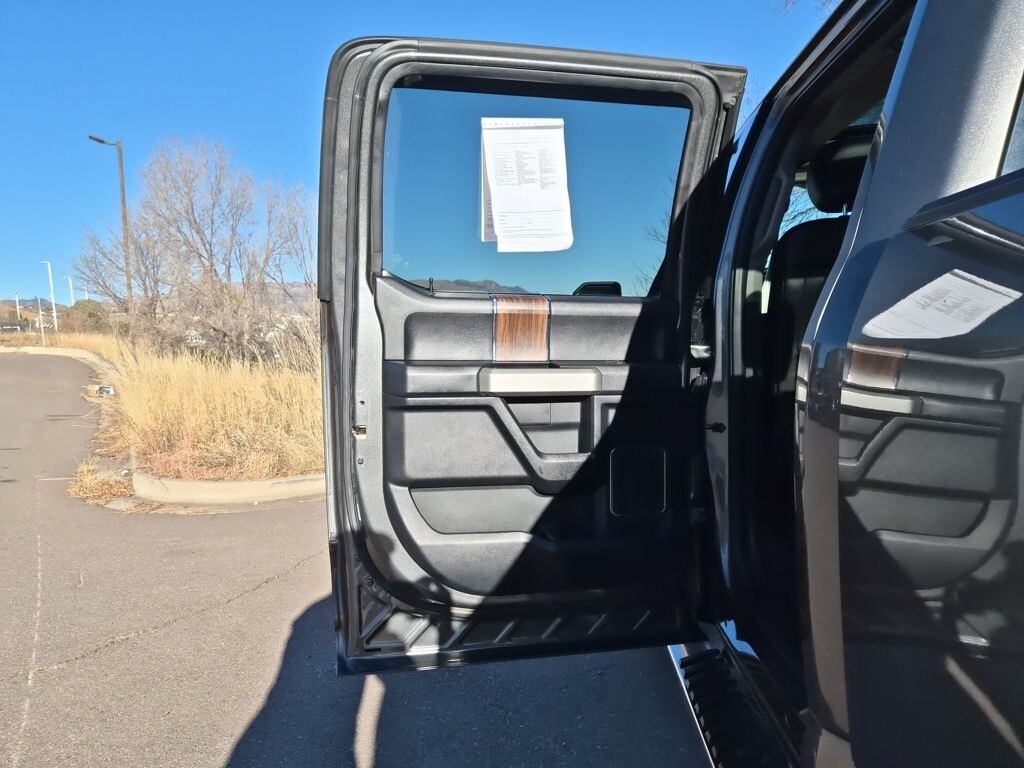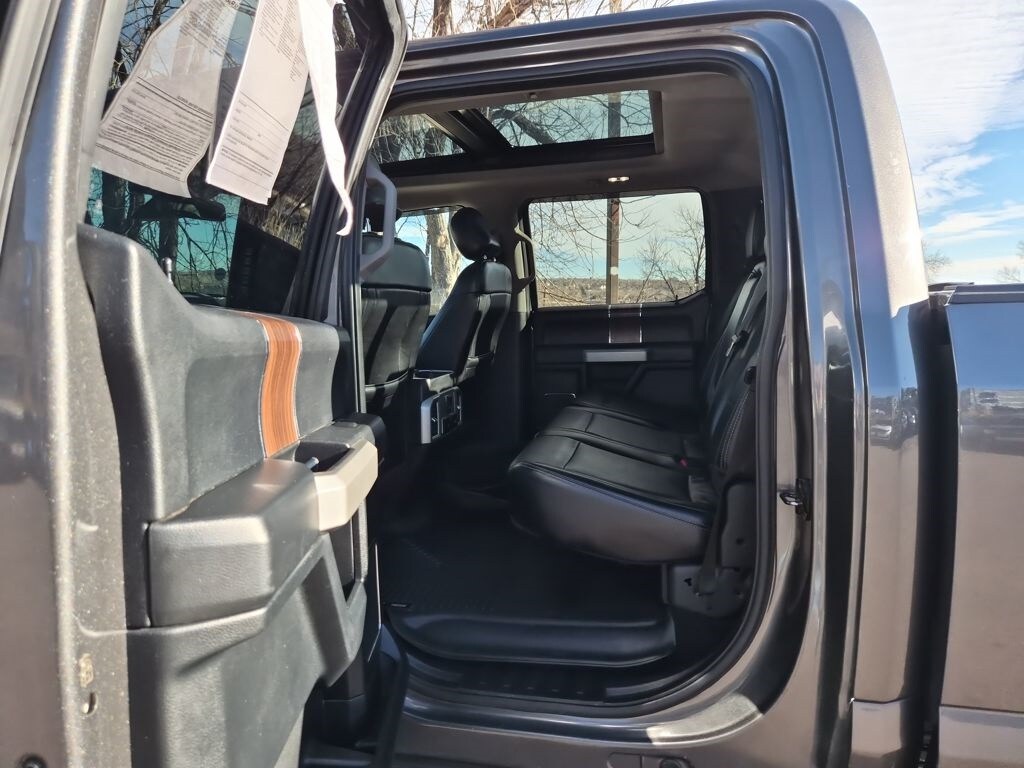 Equipment Group 502A Luxury (110V/400W Outlet, 2nd Row Heated Seats, Auto High Beam w/Rain-Sensing Windshield Wipers, BLIS Blind Spot Information System, Heated Steering Wheel, Leather-Trimmed Bucket Seats, LED Side-Mirror Spotlights, Power Tilt/Telescoping Steering Column w/Memory, Quad Beam LED Headlamps & Taillamps, Radio: Sony Single CD w/HD & SiriusXM Satellite, Remote Start System w/Remote Tailgate Release, Reverse Sensing System, SYNC Connect, Universal Garage Door Opener, and Voice-Activated Navigation), FX4 Off-Road Package (4x4 FX4 Off-Road Bodyside Decal, Hill Descent Control, and Off-Road Tuned Front Shock Absorbers), GVWR: 6,500 lbs Payload Package, Lariat Chrome Appearance Package (Chrome 3-Bar Style Grille w/Chrome Surround, Chrome Angular Step Bars, Chrome Door & Tailgate Handles w/Body-Color Bezel, Chrome Skull Caps on Exterior Mirrors, Single-Tip Chrome Exhaust, and Wheels: 18" Chrome-Like PVD), Trailer Tow Package (Auxiliary Transmission Oil Cooler, Class IV Trailer Hitch Receiver, Engine Oil Cooler, Pro Trailer Backup Assist, and Upgraded Front Stabilizer Bar), 4WD, 18" Machined-Aluminum Wheels, 3.55 Axle Ratio, 4-Wheel Disc Brakes, 7 Speakers, ABS brakes, Adaptive Cruise Control & Collision Warning, Adjustable pedals, Air Conditioning, Alloy wheels, AM/FM radio: SiriusXM, Auto-dimming door mirrors, Auto-dimming Rear-View mirror, Automatic temperature control, Brake assist, Bumpers: chrome, CD player, Compass, Delay-off headlights, Driver door bin, Driver vanity mirror, Dual front impact airbags, Dual front side impact airbags, Electronic Stability Control, Exterior Parking Camera Rear, Front anti-roll bar, Front Center Armrest w/Storage, Front dual zone A/C, Front fog lights, Front reading lights, Front wheel independent suspension, Fully automatic headlights, Heated door mirrors, Heated front seats, Illuminated entry, Integrated Trailer Brake Controller, Leather-Trimmed 40/20/40 Front Seat, Low tire pressure warning, Memory seat, Occupant sensing airbag, Outside temperature display, Overhead airbag, Overhead console, Panic alarm, Passenger door bin, Passenger vanity mirror, Pedal memory, Power door mirrors, Power driver seat, Power Glass Sideview Mirr w/Body-Color Skull Caps, Power passenger seat, Power steering, Power windows, Radio data system, Radio: Single-CD w/SiriusXM Satellite, Rear reading lights, Rear seat center armrest, Rear step bumper, Rear window defroster, Remote keyless entry, Security system, Speed control, Speed-sensing steering, Split folding rear seat, Steering wheel mounted audio controls, SYNC 3, Tachometer, Tailgate Step w/Tailgate Lift Assist, Telescoping steering wheel, Tilt steering wheel, Traction control, Trip computer, Turn signal indicator mirrors, Twin Panel Moonroof, Variably intermittent wipers, Ventilated front seats, Voltmeter, and Wheels: 20" Chrome-Like PVD.