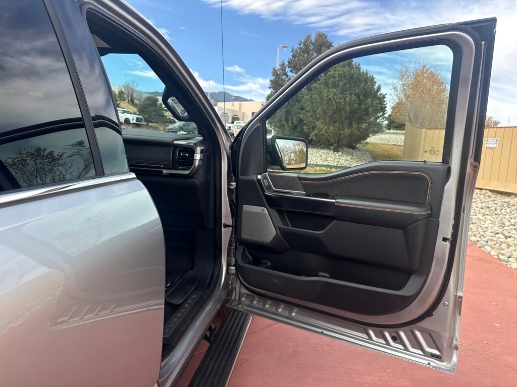 Equipment Group 700A Standard, 4WD, 20" Polished Aluminum Wheels, 3.31 Axle Ratio, 4-Wheel Disc Brakes, 8 Speakers, ABS brakes, Adjustable pedals, Air Conditioning, Alloy wheels, AM/FM radio: SiriusXM with 360L, Auto High-beam Headlights, Auto tilt-away steering wheel, Auto-dimming door mirrors, Auto-dimming Rear-View mirror, Automatic temperature control, Brake assist, Bumpers: body-color, Class IV Trailer Hitch Receiver, Compass, Delay-off headlights, Driver door bin, Driver vanity mirror, Dual front impact airbags, Dual front side impact airbags, Electronic Stability Control, Emergency communication system: SYNC 4 911 Assist, Exterior Parking Camera Rear, Front anti-roll bar, Front Bucket Seats, Front Center Armrest, Front dual zone A/C, Front fog lights, Front License Plate Bracket, Front reading lights, Front wheel independent suspension, Fully automatic headlights, Garage door transmitter, Heated door mirrors, Heated front seats, Heated rear seats, Heated steering wheel, Illuminated entry, Integrated Trailer Brake Controller, Low tire pressure warning, Memory seat, Navigation system: Connected Navigation (90-Day Trial), Occupant sensing airbag, Outside temperature display, Overhead airbag, Overhead console, Panic alarm, Passenger door bin, Passenger vanity mirror, Pedal memory, Power door mirrors, Power driver seat, Power passenger seat, Power steering, Power windows, Radio data system, Radio: B&O Sound System by Bang & Olufsen, Rain sensing wipers, Rear reading lights, Rear seat center armrest, Rear step bumper, Rear window defroster, Remote keyless entry, Security system, Speed control, Speed-sensing steering, Split folding rear seat, Steering wheel memory, Steering wheel mounted audio controls, SYNC 4 w/Enhanced Voice Recognition, Tachometer, Telescoping steering wheel, Tilt steering wheel, Traction control, Trip computer, Turn signal indicator mirrors, Unique Multi-Contour Leather Bucket Seats, Variably intermittent wipers, Ventilated front seats, and Voltmeter.