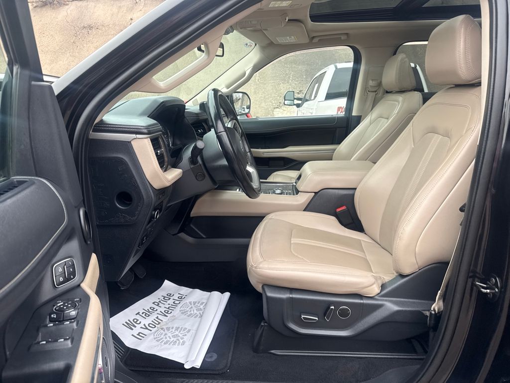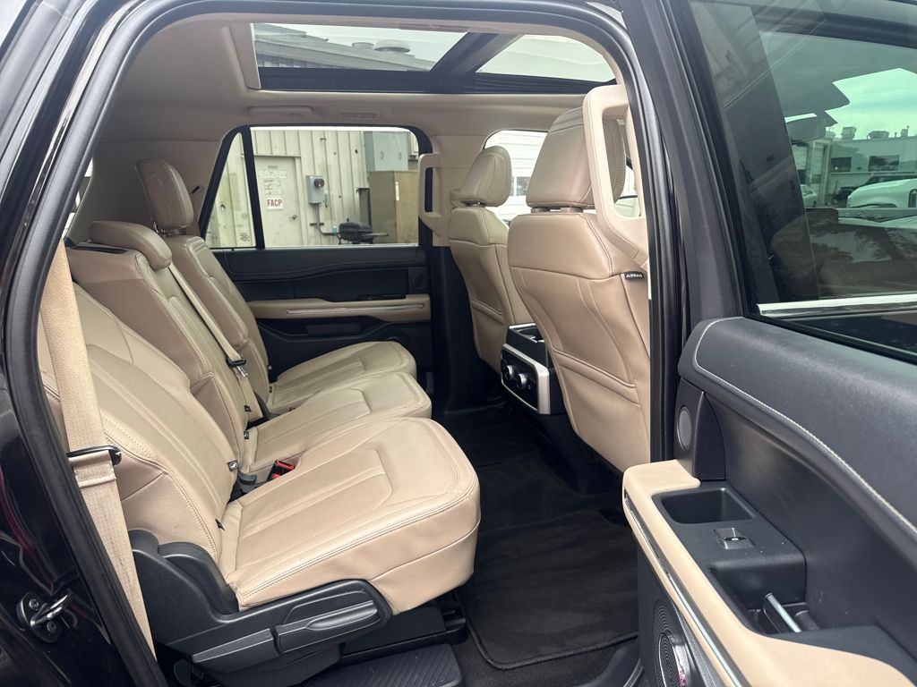 Equipment Group 301A Mid Package, 12 Speakers, 2nd Row Power-Folding 40/20/40 Leather Bench Seat, 3.31 Axle Ratio, 3rd row seats: split-bench, 4-Wheel Disc Brakes, ABS brakes, Adjustable pedals, Air Conditioning, Alloy wheels, AM/FM radio: SiriusXM with 360L, Auto High-beam Headlights, Auto-dimming door mirrors, Auto-dimming Rear-View mirror, Automatic temperature control, Brake assist, Bumpers: body-color, Compass, Delay-off headlights, Driver door bin, Driver vanity mirror, Dual front impact airbags, Dual front side impact airbags, Electronic Stability Control, Emergency communication system: SYNC 4 911 Assist, Exterior Parking Camera Rear, Four wheel independent suspension, Front anti-roll bar, Front Bucket Seats, Front Center Armrest, Front dual zone A/C, Front fog lights, Front License Plate Bracket, Front reading lights, Fully automatic headlights, Garage door transmitter, Heated & Ventilated Leather Front Captain's Chairs, Heated door mirrors, Heated front seats, Heated rear seats, Heated steering wheel, Illuminated entry, Leather steering wheel, Low tire pressure warning, Memory seat, Navigation system: Connected Navigation, Occupant sensing airbag, Outside temperature display, Overhead airbag, Overhead console, Panic alarm, Passenger door bin, Passenger vanity mirror, Pedal memory, Power door mirrors, Power driver seat, Power Liftgate, Power moonroof, Power passenger seat, Power steering, Power windows, Radio data system, Radio: B&O Sound System by Bang & Olufsen, Rain sensing wipers, Rear air conditioning, Rear anti-roll bar, Rear reading lights, Rear window defroster, Rear window wiper, Reclining 3rd row seat, Remote keyless entry, Second Row Power Windows Removal, Security system, SiriusXM w/360L, Speed control, Speed-sensing steering, Speed-Sensitive Wipers, Split folding rear seat, Spoiler, Steering wheel memory, Steering wheel mounted audio controls, SYNC 4 w/Enhanced Voice Recognition, Tachometer, Telescoping steering wheel, Tilt steering wheel, Traction control, Trip computer, Turn signal indicator mirrors, Variably intermittent wipers, Ventilated front seats, Voltmeter, and Wheels: 20" Bright Machined Aluminum.