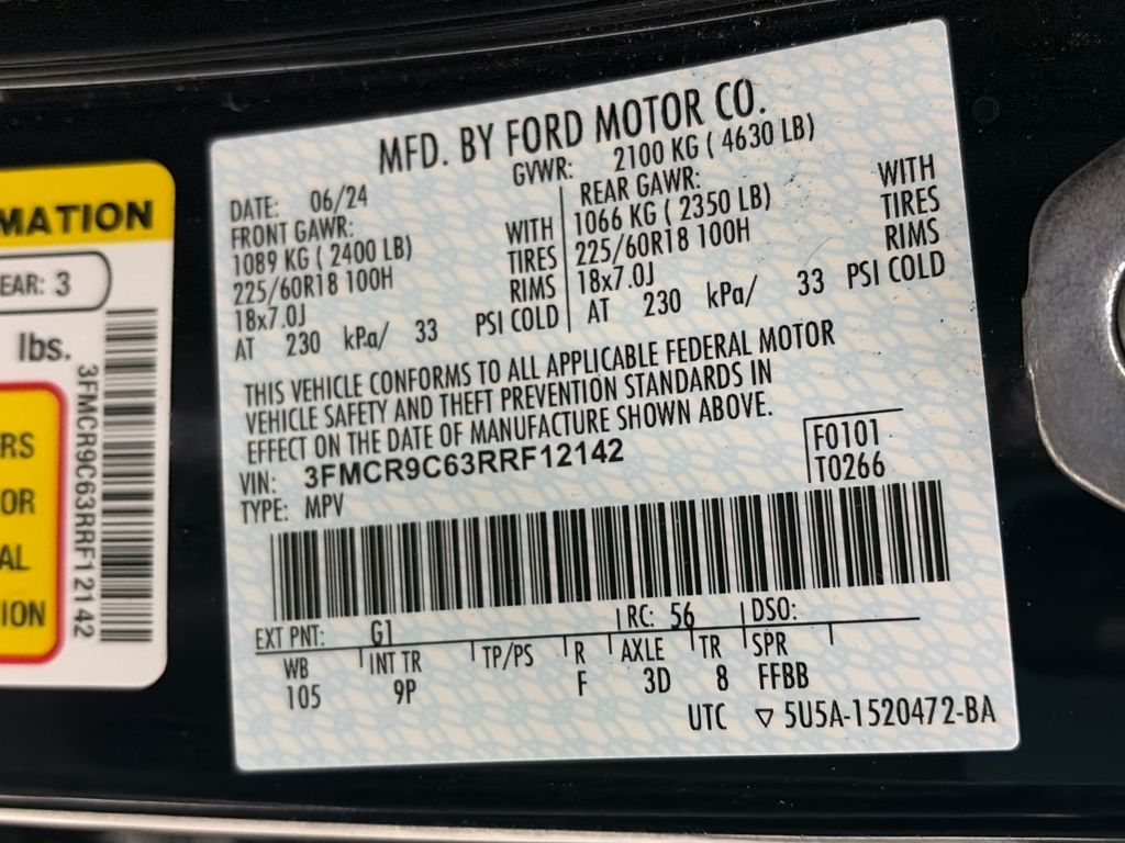 TECH PACKAGE Bang & Olufsen Sound System, 10 speakers and subwoofer, Universal Garage Door Opener (UGDO), Wireless Charging Pad, HD Radio, FORD CO-PILOT360 ASSIST+ Evasive Steering Assist, Voice-Activated Touchscreen Navigation System, pinch-to-zoom capability and SiriusXM Traffic and Travel Link w/a, SiriusXM Traffic and Travel Links services are not available in Alaska and Hawaii, After your trial period ends, SiriusXM audio and data services each require a subscription sold separately, or as a package, by SiriusXM Radio Inc, See SiriusXM customer agreement for complete terms at www.siriusxm.com, All fees and programming subject to change, Trial subscription available in Alaska and Hawaii, Intelligent Adaptive Cruise Control w/Stop & Go, lane centering and speed sign recognition, POWER MOONROOF, CARGO MANAGEMENT SYSTEM shelf, divider and table, ENGINE: 1.5L ECOBOOST auto start-stop technology (STD). Ford Outer Banks with Shadow Black exterior and Ebony/Roast interior features a 3 Cylinder Engine with 181 HP at 6000 RPM*.