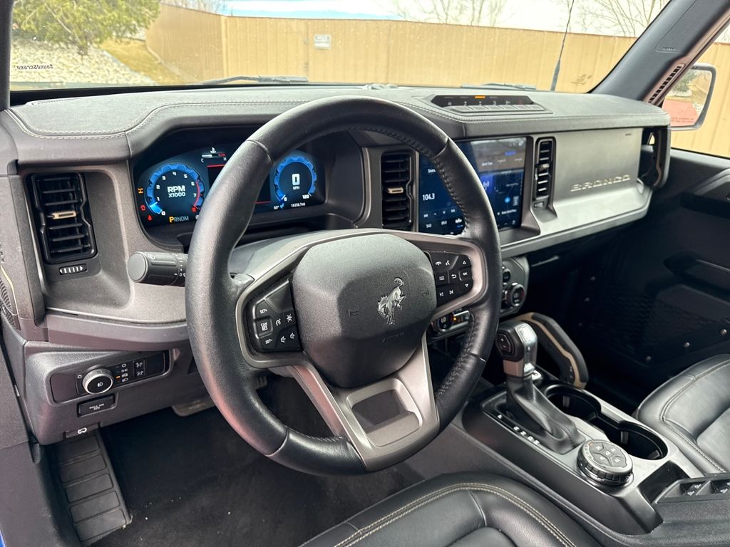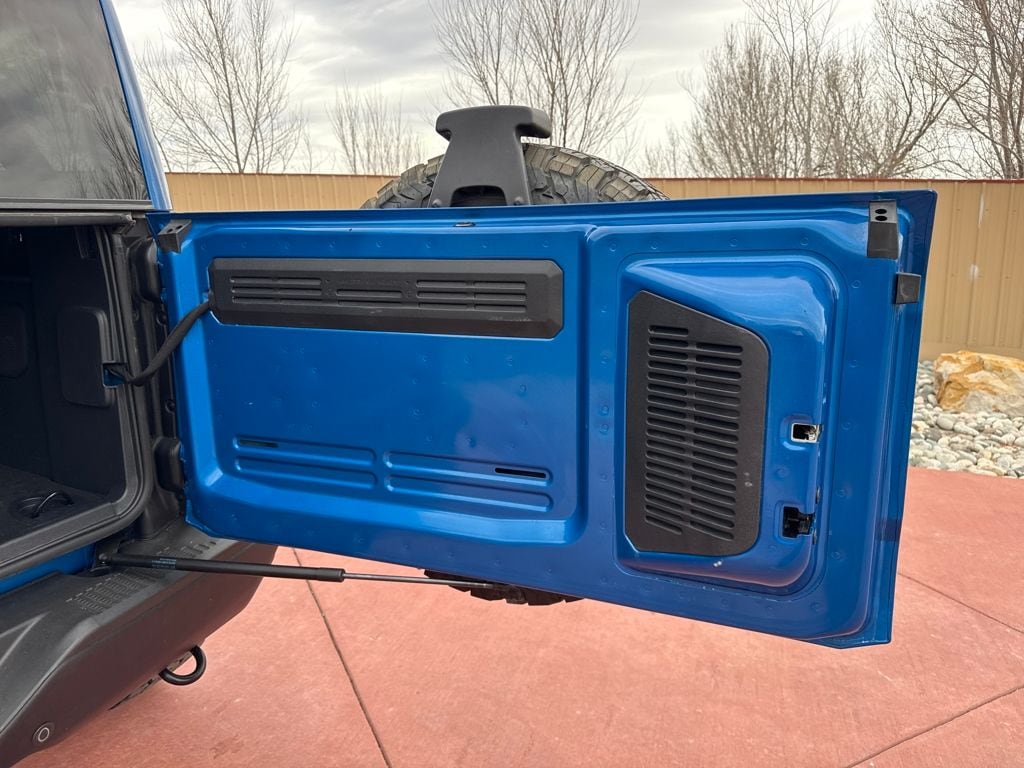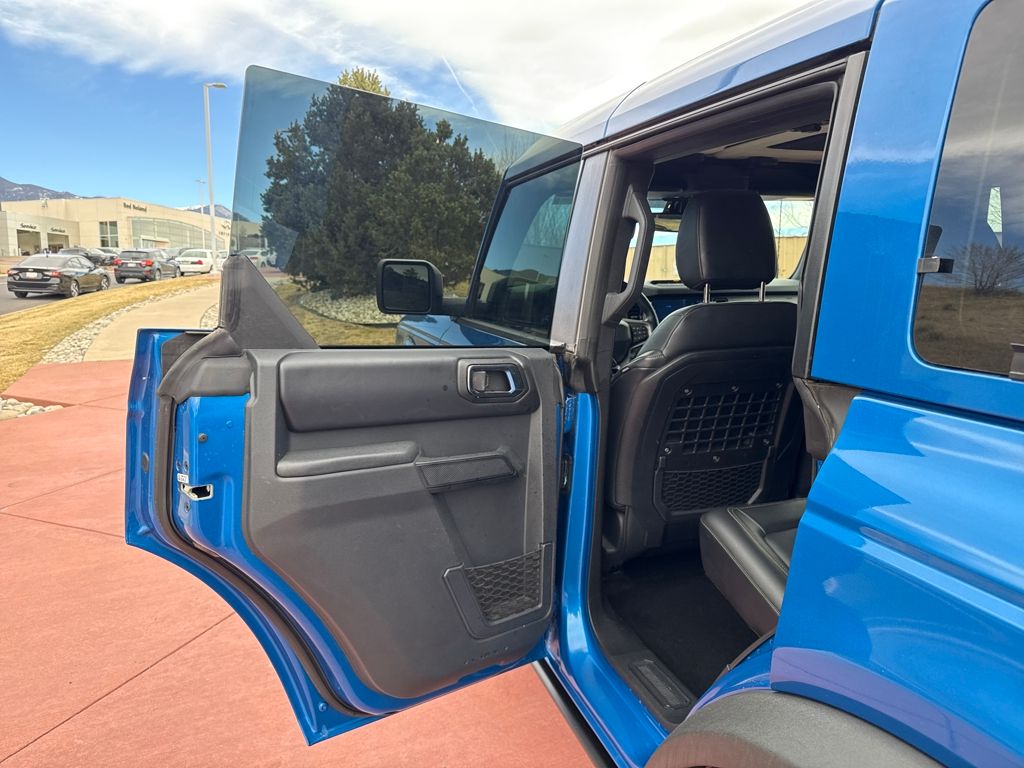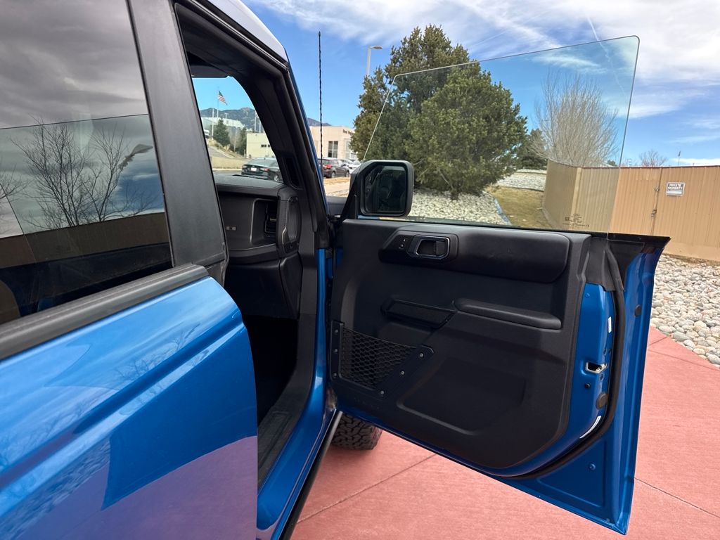 Equipment Group 332A Mid Package (2-Door Intelligent Access w/Lock/Unlock, Ambient Footwell Lighting, Connected Navigation, Dr & Pass Illuminated Sliding Visor Vanity Mirrors, Dual Smart Charging USB Ports, Dual-Zone Electronic Automatic Temperature Control, Front Row Heated Seats, Power Outlet - Back Side of Center Floor Console, and Rear Parking Sensors), 7 Speakers, AM/FM radio: SiriusXM with 360L, Hard Top Sound Deadening Headliner, Power door mirrors, Steering wheel mounted audio controls, 4-Wheel Disc Brakes, 4.7 Axle Ratio, ABS brakes, Air Conditioning, Alloy wheels, AM/FM Stereo, Auto High-Beam Headlamps, Auto High-beam Headlights, Auto-dimming Rear-View mirror, BLIS Blind Spot Information System, Body Color-Painted Hard Top, Brake assist, Compass, Delay-off headlights, Driver door bin, Driver vanity mirror, Dual front impact airbags, Dual front side impact airbags, Electronic Stability Control, Emergency communication system: 911 Assist, Exterior Parking Camera Rear, Front anti-roll bar, Front Bucket Seats, Front Center Armrest, Front fog lights, Front License Plate Bracket, Front reading lights, Front wheel independent suspension, Fully automatic headlights, Heated door mirrors, Heated front seats, Heated steering wheel, Illuminated entry, Integrated roll-over protection, Internet access capable: FordPass Connect, Lane-Keeping System, Leather Shift Knob, Low tire pressure warning, Marine Grade Vinyl Heated Bucket Seats, Occupant sensing airbag, Outside temperature display, Overhead airbag, Overhead console, Panic alarm, Passenger door bin, Passenger vanity mirror, Power steering, Power windows, Pre-Collision Assist w/Automatic Emergency Braking, Radio data system, Rear-View Camera, Rear-Window Defroster & Washer, Remote keyless entry, Security system, SiriusXM w/360L, Speed control, Split folding rear seat, SYNC 4, Tachometer, Telescoping steering wheel, Tilt steering wheel, Traction control, Trip computer, Variably intermittent wipers, Voltmeter, and Wheels: 17" Carbonized Gray-Painted Aluminum.