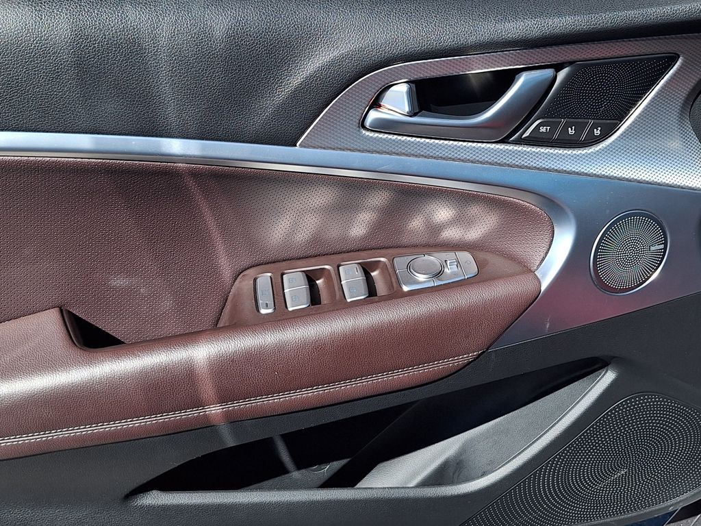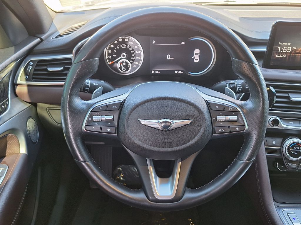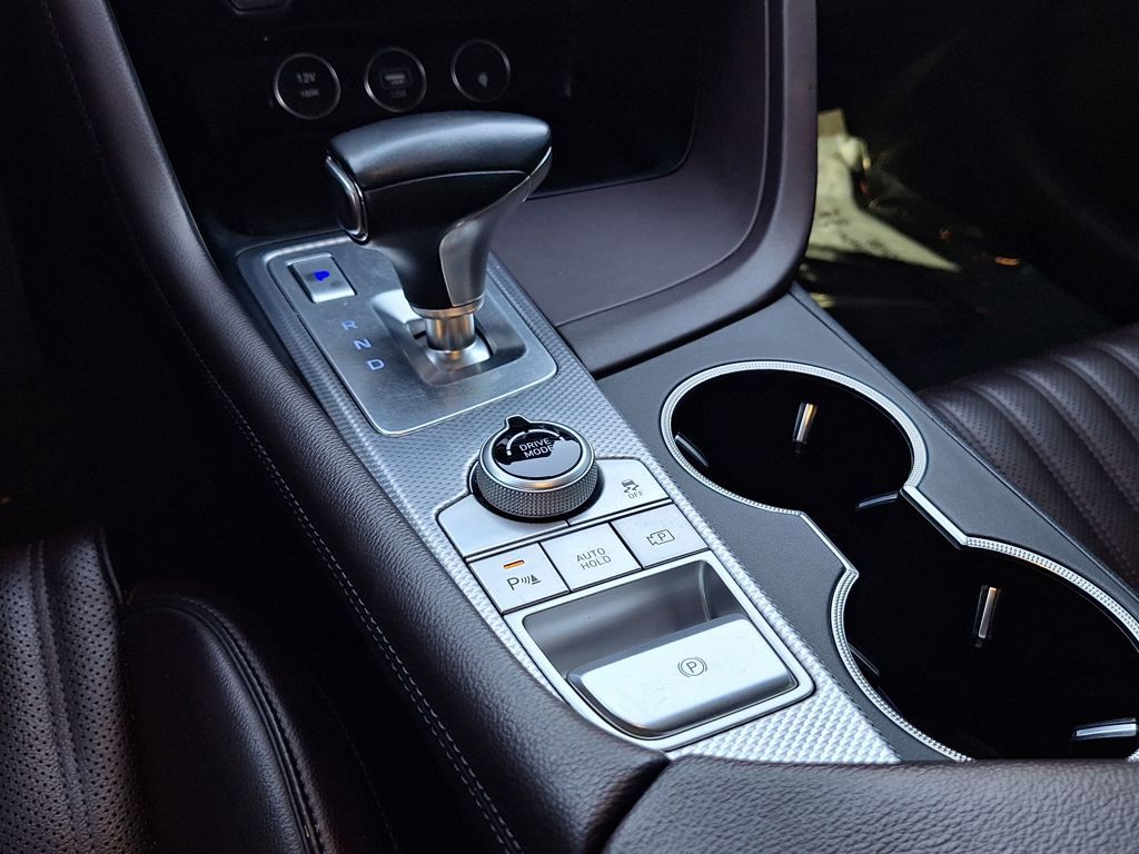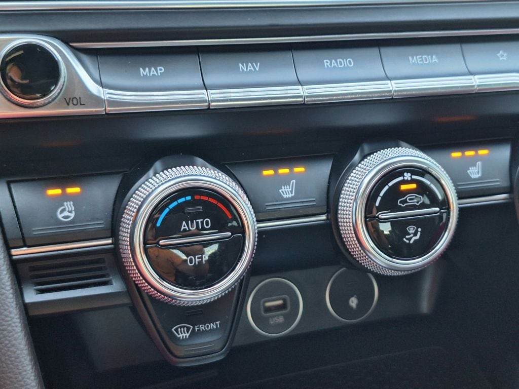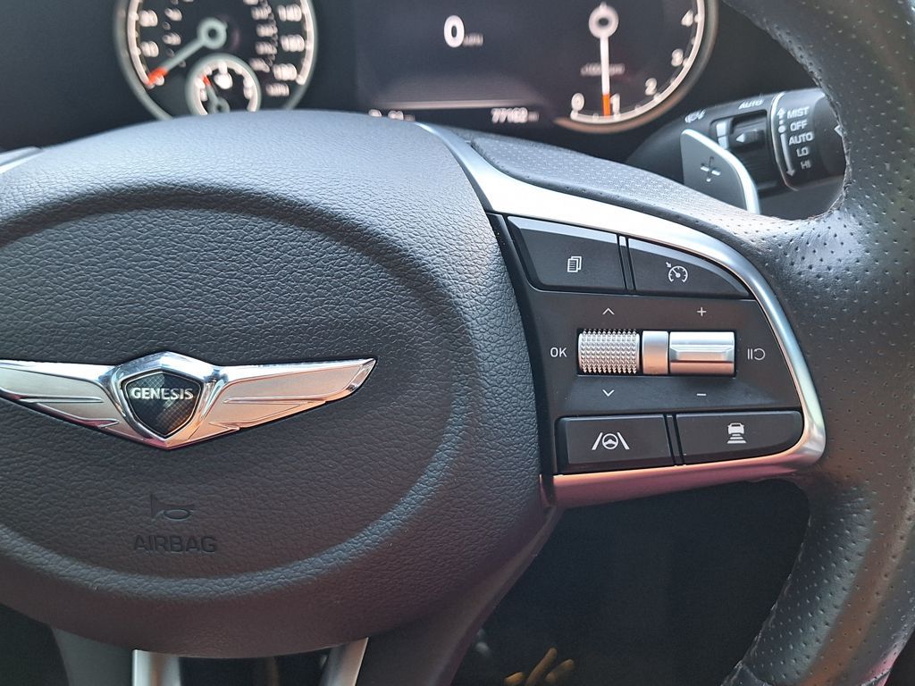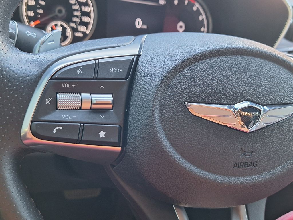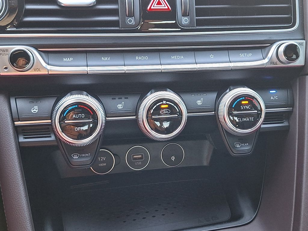 Prestige Package (4-Way Power Lumbar Front Passenger Seat, Door & Console Aluminum Trim, Forward/Reverse Parking Distance Warning, Front Passenger Seat Walk-In Device, Front Side Acoustic Laminated Glass, Integrated Memory System (IMS), Leather Seating Surfaces, Option Group 02, Power Folding EC Mirrors w/Logo Lamp, Power Tilt & Telescopic Steering Wheel, Radio: AM/FM/SiriusXM/HD Lexicon Prem Audio System, Rain-Sensing Wipers, Wheels: 19" x 8.0J Fr & 19" x 8.5J Rr Alloy, Wide Sunroof, and Wireless Device Charging), 4-Wheel Disc Brakes, 6 Speakers, ABS brakes, Air Conditioning, Alloy wheels, AM/FM radio: SiriusXM, Android Auto & Apple CarPlay, Anti-whiplash front head restraints, Auto High-beam Headlights, Auto-dimming Rear-View mirror, Automatic temperature control, Brake assist, Bumpers: body-color, Delay-off headlights, Driver door bin, Driver vanity mirror, Dual front impact airbags, Dual front side impact airbags, Electronic Stability Control, Emergency communication system: Genesis Connected Services, Exterior Parking Camera Rear, Four wheel independent suspension, Front anti-roll bar, Front Bucket Seats, Front Center Armrest, Front dual zone A/C, Front reading lights, Fully automatic headlights, Garage door transmitter: HomeLink, Heated door mirrors, Heated front seats, Heated Multi-Adjustable Front Bucket Seats, Heated steering wheel, Illuminated entry, Knee airbag, Leatherette Seating Surfaces, Low tire pressure warning, Navigation System, Occupant sensing airbag, Outside temperature display, Overhead airbag, Overhead console, Panic alarm, Passenger door bin, Passenger vanity mirror, Power door mirrors, Power driver seat, Power passenger seat, Power steering, Power windows, Premium First Aid Kit, Radio: AM/FM/SiriusXM/HD Audio System, Rear anti-roll bar, Rear Bumper Applique, Rear reading lights, Rear seat center armrest, Rear window defroster, Remote keyless entry, Reversible Cargo Tray, Security system, Speed control, Speed-sensing steering, Speed-Sensitive Wipers, Split folding rear seat, Steering wheel mounted audio controls, Tachometer, Telescoping steering wheel, Tilt steering wheel, Traction control, Trip computer, Turn signal indicator mirrors, Variably intermittent wipers, Wheel Locks, and Wheels: 18" x 8.0J Alloy.