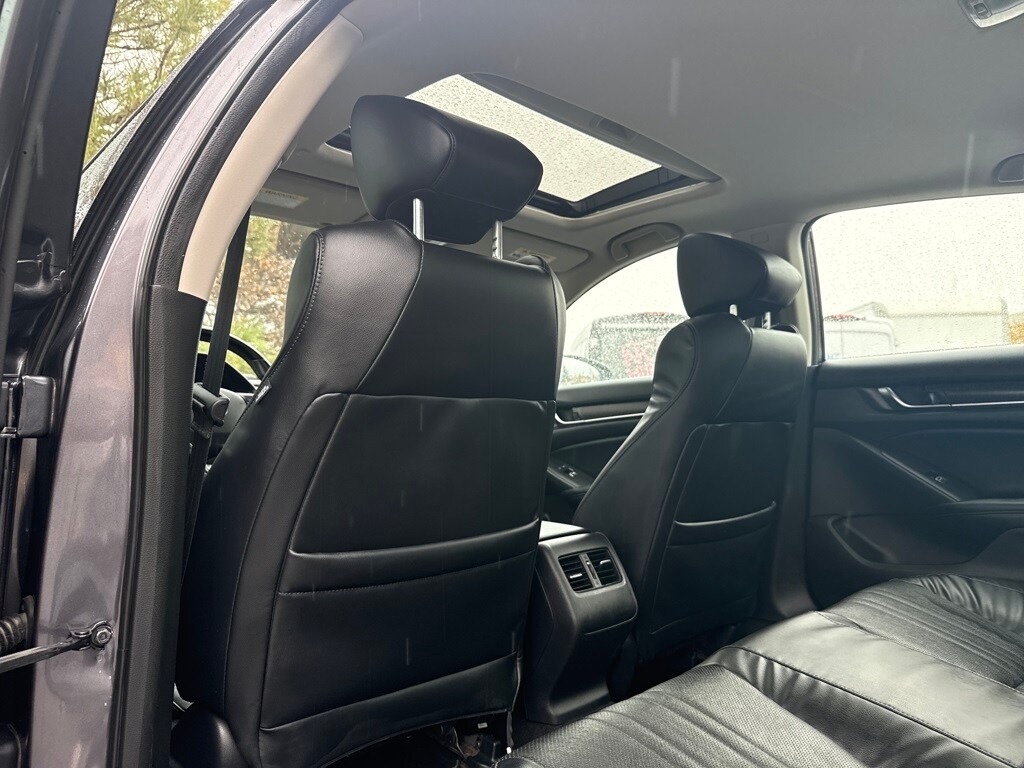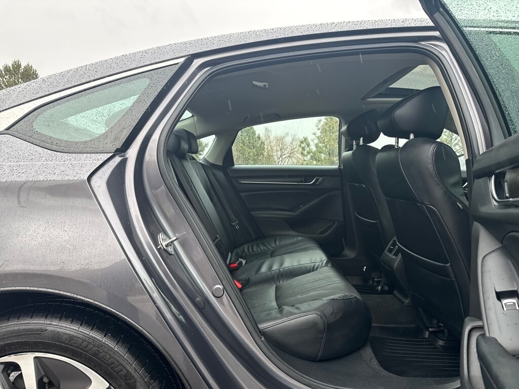 2.0L 4-Cylinder DOHC 16V i-VTEC, 10 Speakers, 17" Machine-Finished Alloy Wheels, 4-Wheel Disc Brakes, ABS brakes, Air Conditioning, Alloy wheels, AM/FM radio: SiriusXM, Apple CarPlay/Android Auto, Auto High-beam Headlights, Auto-dimming Rear-View mirror, Automatic temperature control, Blind Spot Information (BSI) System warning, Brake assist, Bumpers: body-color, Delay-off headlights, Driver door bin, Driver vanity mirror, Dual front impact airbags, Dual front side impact airbags, Electronic Stability Control, Emergency communication system: HondaLink, Exterior Parking Camera Rear, Four wheel independent suspension, Front anti-roll bar, Front Bucket Seats, Front Center Armrest, Front dual zone A/C, Front fog lights, Front reading lights, Fully automatic headlights, Garage door transmitter: HomeLink, Heated door mirrors, Heated Front Bucket Seats, Heated front seats, Illuminated entry, Knee airbag, Leather steering wheel, Leather-Trimmed Seats, Low tire pressure warning, Memory seat, Occupant sensing airbag, Outside temperature display, Overhead airbag, Overhead console, Panic alarm, Passenger door bin, Passenger vanity mirror, Power door mirrors, Power driver seat, Power moonroof, Power passenger seat, Power steering, Power windows, Radio data system, Radio: 450-Watt AM/FM/HD Premium Audio System, Rear anti-roll bar, Rear seat center armrest, Rear window defroster, Remote keyless entry, Security system, Speed control, Speed-sensing steering, Speed-Sensitive Wipers, Split folding rear seat, Steering wheel mounted audio controls, Telescoping steering wheel, Tilt steering wheel, Traction control, Trip computer, Turn signal indicator mirrors, and Variably intermittent wipers.