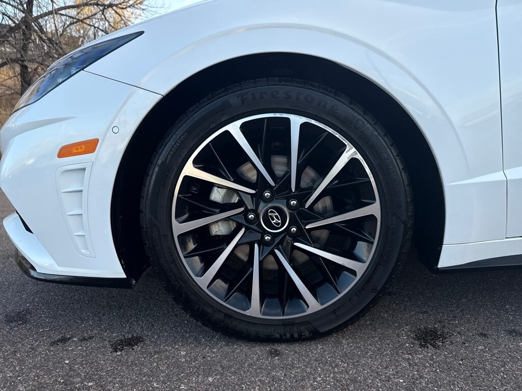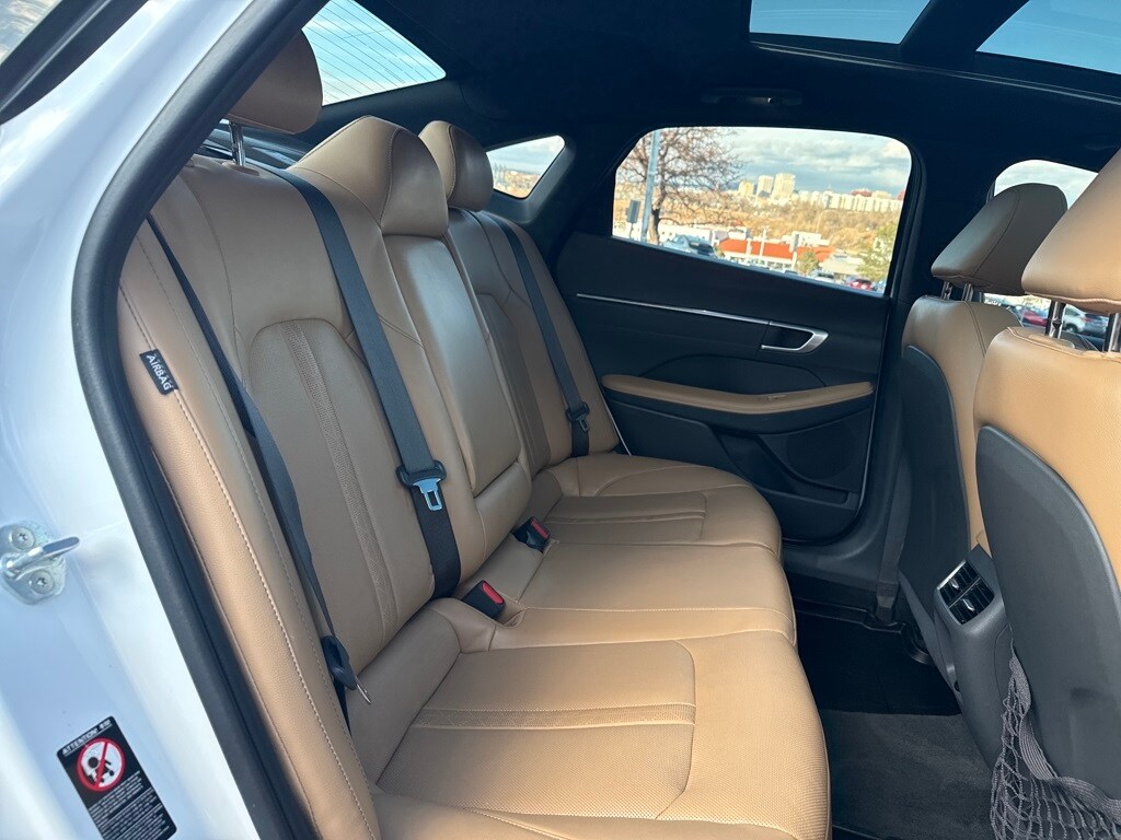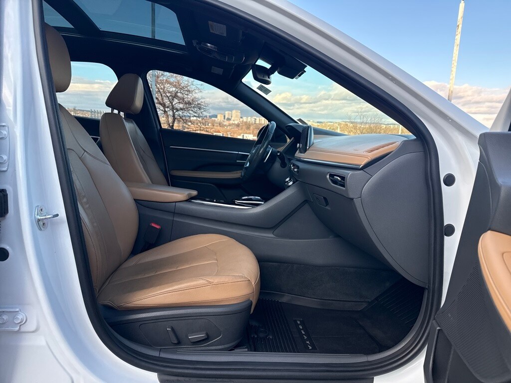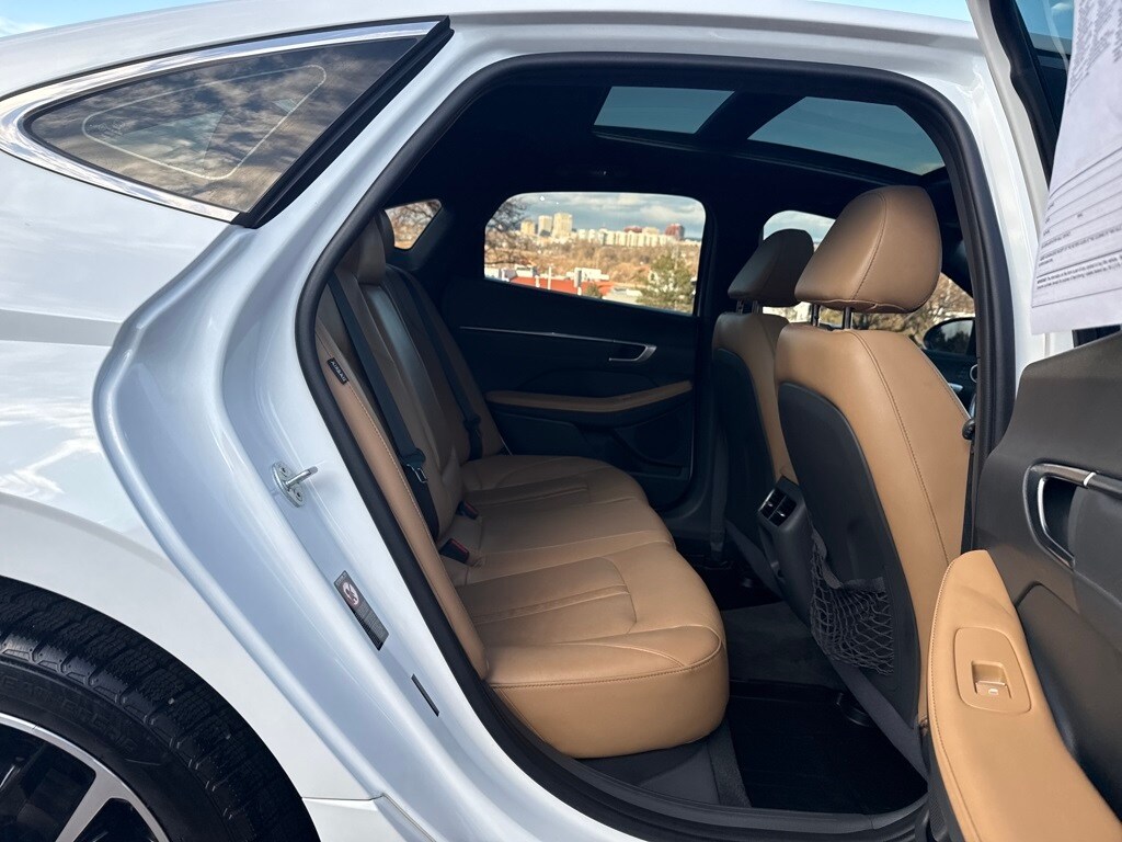 Option Group 01, Dark Gray/Camel Leather, 12 Speakers, 4-Wheel Disc Brakes, ABS brakes, Air Conditioning, Alloy wheels, AM/FM radio: SiriusXM, Apple CarPlay & Android Auto, Auto High-beam Headlights, Auto-dimming Rear-View mirror, Automatic temperature control, Bose Premium Audio, Brake assist, Bumpers: body-color, Cargo Net, Carpeted Floor Mats, Delay-off headlights, Driver door bin, Driver vanity mirror, Dual front impact airbags, Dual front side impact airbags, Electronic Stability Control, Emergency communication system: Blue Link Connected Car Service (3-year complimentary subscription), First Aid Kit, Four wheel independent suspension, Front anti-roll bar, Front Bucket Seats, Front Center Armrest, Front dual zone A/C, Front reading lights, Fully automatic headlights, Garage door transmitter: HomeLink, Heads-Up Display, Heated door mirrors, Heated front seats, Heated steering wheel, Heated/Ventilated Front Bucket Seats, Illuminated entry, Knee airbag, Leather Seating Surfaces, Low tire pressure warning, Memory seat, Navigation System, Occupant sensing airbag, Outside temperature display, Overhead airbag, Overhead console, Panic alarm, Passenger door bin, Passenger vanity mirror, Power door mirrors, Power driver seat, Power moonroof, Power passenger seat, Power steering, Power windows, Radio data system, Radio: AM/FM/MP3/HD/SiriusXM Display Audio w/Nav, Rain sensing wipers, Rear anti-roll bar, Rear Bumper Applique, Rear seat center armrest, Rear side impact airbag, Rear window defroster, Remote keyless entry, Security system, Speed control, Speed-sensing steering, Speed-Sensitive Wipers, Split folding rear seat, Steering wheel mounted audio controls, Tachometer, Telescoping steering wheel, Tilt steering wheel, Traction control, Trip computer, Turn signal indicator mirrors, Variably intermittent wipers, Ventilated front seats, Wheel Locks, Wheels: 18 x 7.5J Aluminum Alloy, and Wireless Device Charging.