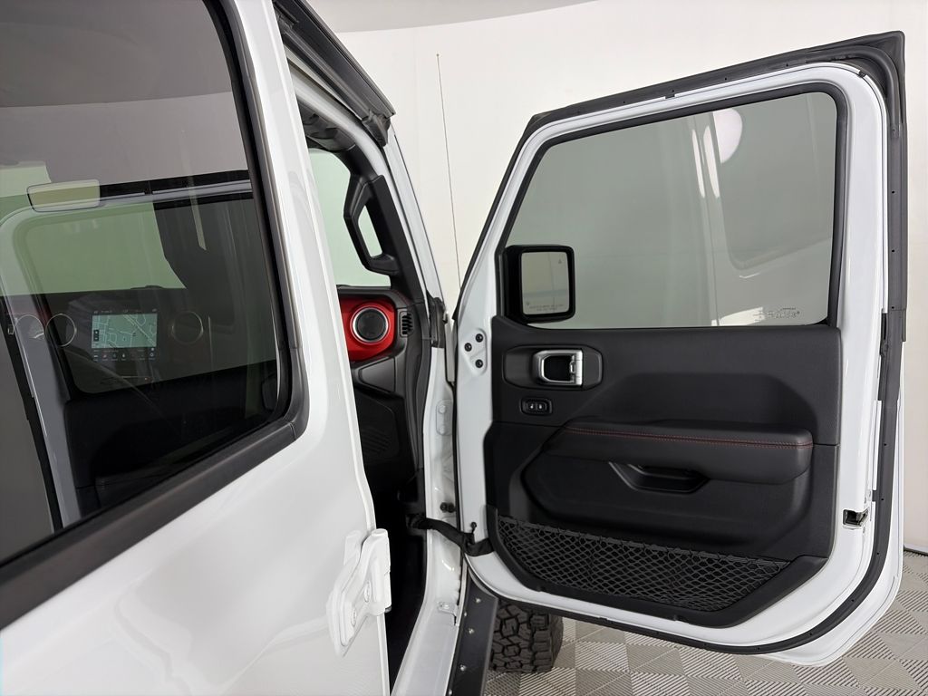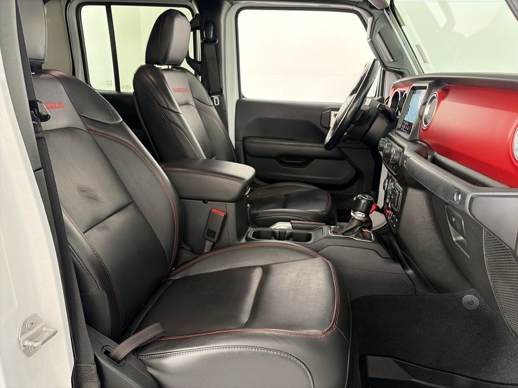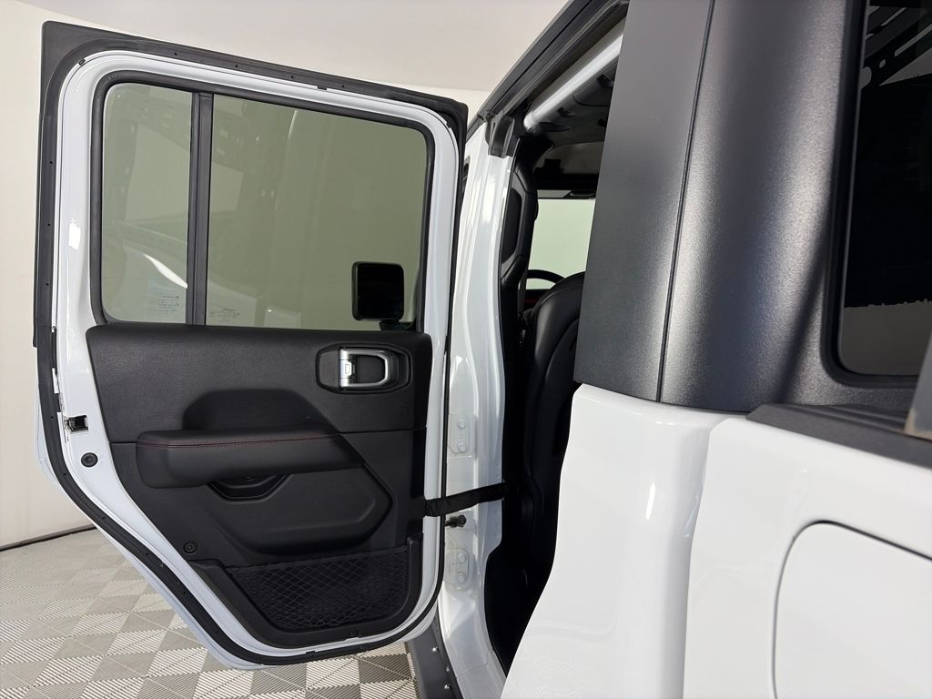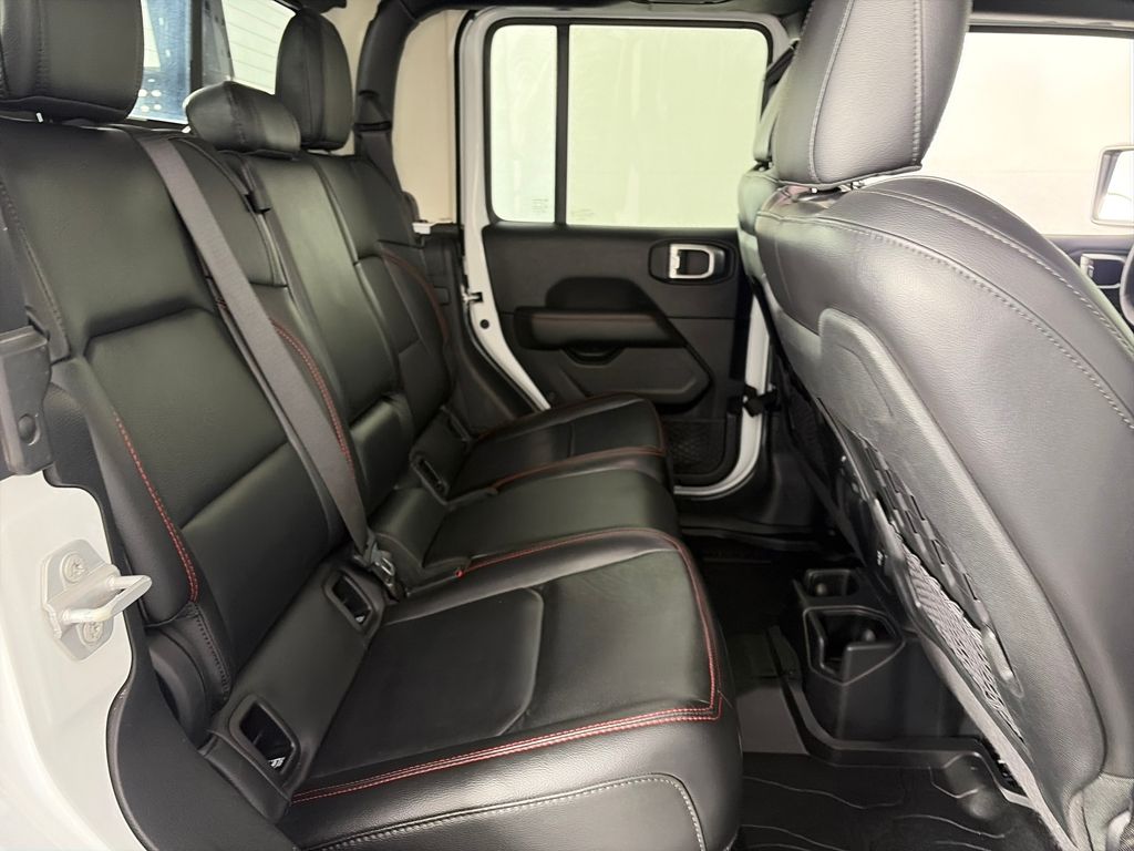 TRANSMISSION: 8-SPEED AUTOMATIC (850RE) Tip Start, Transmission Skid Plate, Selec-Speed Control, 8.4 RADIO & PREMIUM AUDIO GROUP Emergency/Assistance Call, SiriusXM Traffic Plus, Alpine Premium Audio System, HD Radio, Radio: Uconnect 4C Nav w/8.4 Display, Rear View Auto Dim Mirror, For Details, Visit DriveUconnect.com, 1-Year SiriusXM Guardian Trial, SiriusXM Travel Link, BLACK, LEATHER TRIMMED BUCKET SEATS Full Length Floor Console Premium Armrest, Leather Wrapped Park Brake Handle, Leather Wrapped Shift Knob, Premium Door Trim Panel, Rear Armrest w/Cupholder Seat, BLACK 3-PIECE HARD TOP Freedom Panel Storage Bag, Rear Window Defroster, Rear Sliding Window, No Soft Top, LED LIGHTING GROUP Daytime Running Lamps LED Accents, LED Park Turn Lamps, Front LED Fog Lamps, LED Reflector Headlamps, LED Taillamps, COLD WEATHER GROUP Heated Steering Wheel, Heated Front Seats, WHEELS: 17 X 7.5 POLISHED BLACK ALUMINUM, SAFETY GROUP ParkSense Rear Park Assist System, Blind Spot & Cross Path Detection, ADVANCED SAFETY GROUP Advanced Brake Assist, Full Speed Forward Collision Warning Plus, REMOTE PROXIMITY KEYLESS ENTRY, REMOTE START SYSTEM, SPRAY IN BEDLINER, TRAILER TOW PACKAGE Trailer Hitch Zoom, Class IV Hitch Receiver, Heavy Duty Engine Cooling, 240 Amp Alternator, ENGINE: 3.6L V6 24V VVT UPG I W/ESS (STD). Jeep Rubicon with Bright White Clearcoat exterior and Black interior features a V6 Cylinder Engine with 285 HP at 6400 RPM*.