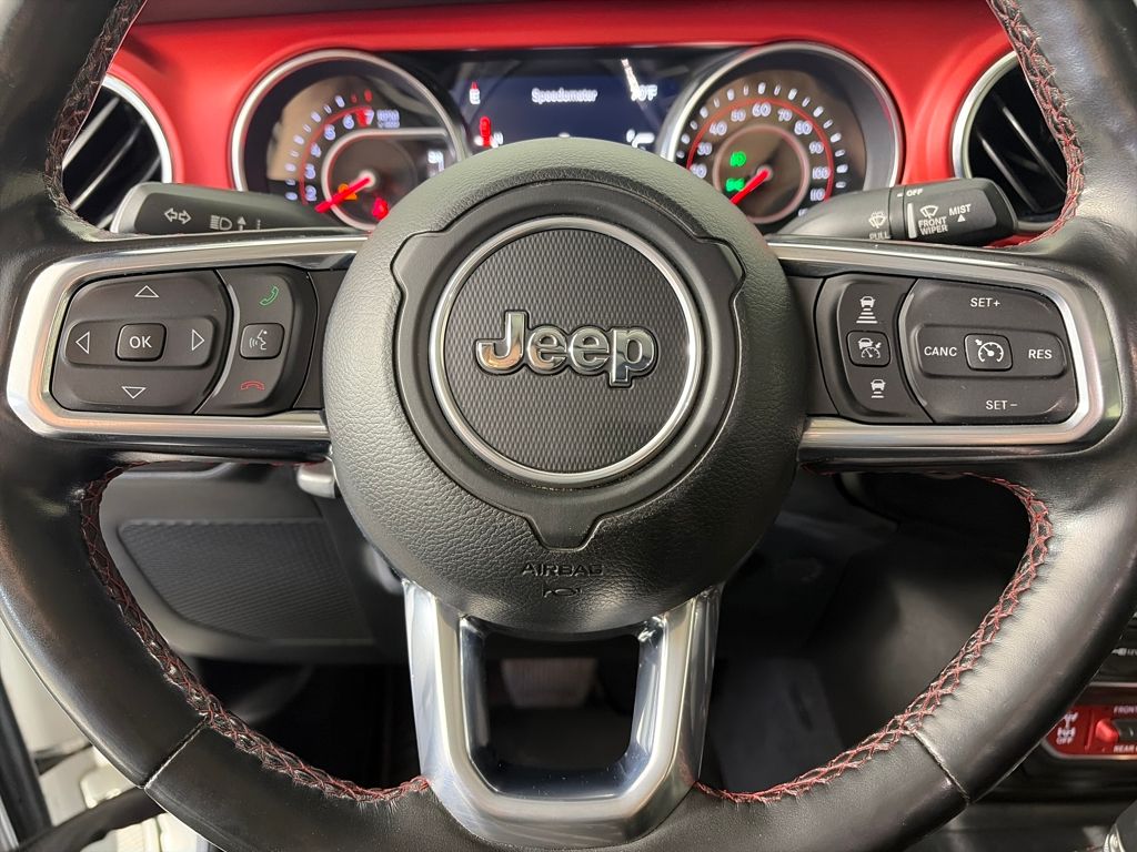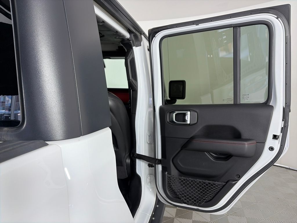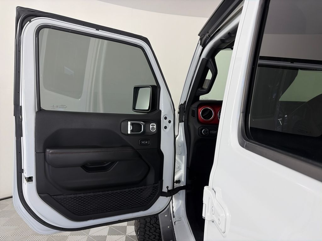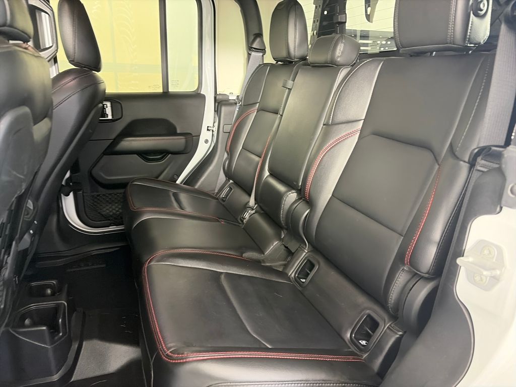 TRANSMISSION: 8-SPEED AUTOMATIC (850RE) Tip Start, Transmission Skid Plate, Selec-Speed Control, 8.4 RADIO & PREMIUM AUDIO GROUP Emergency/Assistance Call, SiriusXM Traffic Plus, Alpine Premium Audio System, HD Radio, Radio: Uconnect 4C Nav w/8.4 Display, Rear View Auto Dim Mirror, For Details, Visit DriveUconnect.com, 1-Year SiriusXM Guardian Trial, SiriusXM Travel Link, BLACK, LEATHER TRIMMED BUCKET SEATS Full Length Floor Console Premium Armrest, Leather Wrapped Park Brake Handle, Leather Wrapped Shift Knob, Premium Door Trim Panel, Rear Armrest w/Cupholder Seat, BLACK 3-PIECE HARD TOP Freedom Panel Storage Bag, Rear Window Defroster, Rear Sliding Window, No Soft Top, LED LIGHTING GROUP Daytime Running Lamps LED Accents, LED Park Turn Lamps, Front LED Fog Lamps, LED Reflector Headlamps, LED Taillamps, COLD WEATHER GROUP Heated Steering Wheel, Heated Front Seats, WHEELS: 17 X 7.5 POLISHED BLACK ALUMINUM, SAFETY GROUP ParkSense Rear Park Assist System, Blind Spot & Cross Path Detection, ADVANCED SAFETY GROUP Advanced Brake Assist, Full Speed Forward Collision Warning Plus, REMOTE PROXIMITY KEYLESS ENTRY, REMOTE START SYSTEM, SPRAY IN BEDLINER, TRAILER TOW PACKAGE Trailer Hitch Zoom, Class IV Hitch Receiver, Heavy Duty Engine Cooling, 240 Amp Alternator, ENGINE: 3.6L V6 24V VVT UPG I W/ESS (STD). Jeep Rubicon with Bright White Clearcoat exterior and Black interior features a V6 Cylinder Engine with 285 HP at 6400 RPM*.
