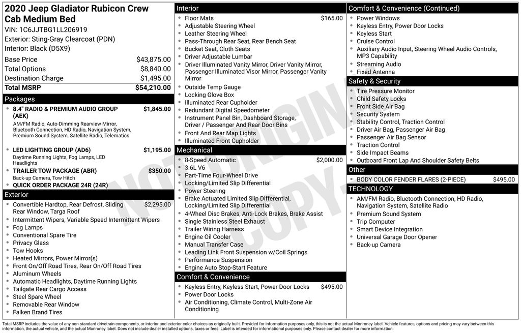 Inside, the Gladiator prioritizes comfort with features like a first-row sunroof that invites fresh air, premium cloth seat upholstery for year-round comfort, and seven USB ports for convenient charging. The 2020 Jeep Gladiator Rubicon 4x4 combines durability, advanced technology, and everyday comfort, making it an ideal companion for your next adventure. Experience the perfect balance of ruggedness and refinement with this remarkable vehicle.