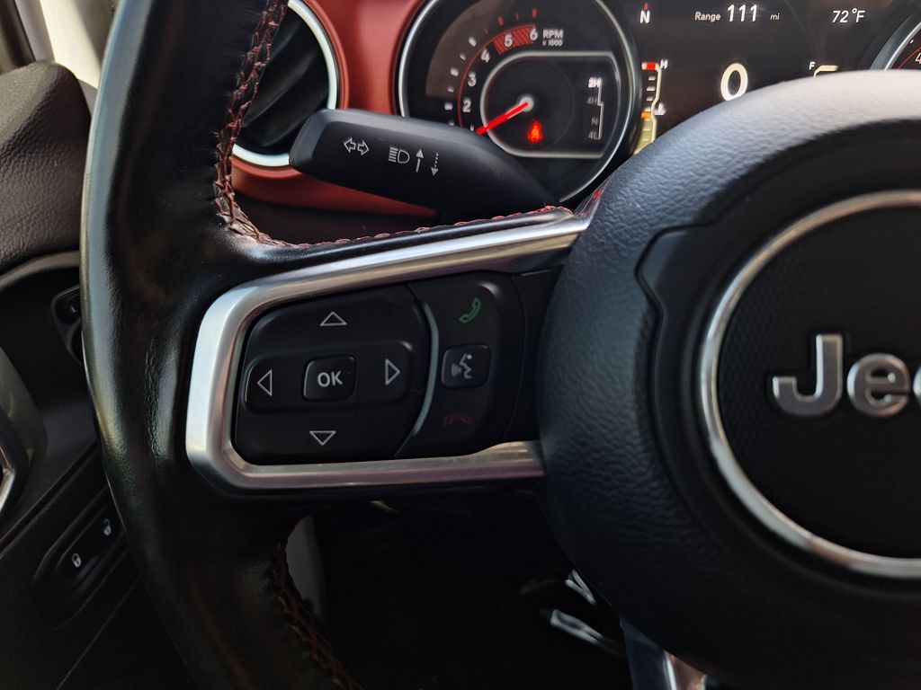8.4" Radio & Premium Audio Group (1-Year SiriusXM Guardian Trial, 4G LTE Wi-Fi Hot Spot, 5-Year SiriusXM Traffic Service, 5-Year SiriusXM Travel Link Service, 8.4" Touchscreen Display, Alpine Premium Audio System, Auto-Dimming Rear-View Mirror, Emergency/Assistance Call, For Details, Visit DriveUconnect.com, GPS Navigation, HD Radio, Off-Road Info Pages, Radio: Uconnect 4C Nav w/8.4" Display, SiriusXM Traffic Plus, and SiriusXM Travel Link), Cold Weather Group (Heated Front Seats and Heated Steering Wheel), LED Lighting Group (Daytime Running Lamps LED Accents, Front LED Fog Lamps, LED Premium Reflector Headlamps, and LED Taillamps), Quick Order Package 26R, Safety Group (Blind Spot & Cross Path Detection and ParkSense Rear Park Assist System), Trailer Tow & HD Electrical Group (240 Amp Alternator, 7 & 4 Pin Wiring Harness, 700 Amp Maintenance Free Battery, Auxiliary Switches, and Class II Receiver Hitch), 4-Wheel Disc Brakes, 8 Speakers, ABS brakes, Air Conditioning, Alloy wheels, AM/FM radio: SiriusXM, Apple CarPlay/Android Auto, Automatic temperature control, Aux Battery, Body Color 3-Piece Hard Top, Body Color Fender Flares, Brake assist, Compass, Delay-off headlights, Driver door bin, Driver vanity mirror, Dual front impact airbags, Dual front side impact airbags, Electronic Stability Control, Front anti-roll bar, Front Bucket Seats, Front Center Armrest w/Storage, Front dual zone A/C, Front fog lights, Front License Plate Bracket, Front reading lights, Fully automatic headlights, Garage door transmitter, Heated door mirrors, Illuminated entry, Integrated roll-over protection, Leather steering wheel, Low tire pressure warning, Manufacturer's Statement of Origin, MOPAR All-Weather Floor Mats (DISC), MOPAR Hardtop Headliner, Non-Lock Fuel Cap w/o Discriminator, Occupant sensing airbag, Outside temperature display, Panic alarm, ParkView Rear Back-Up Camera, Passenger door bin, Passenger vanity mirror, Performance Suspension, Power door mirrors, Power steering, Power windows, Premium Cloth Low-Back Bucket Seats, Radio data system, Radio: Uconnect 4 w/7" Display, Rear anti-roll bar, Rear reading lights, Remote keyless entry, Remote Proximity Keyless Entry, Remote Start System, Security system, Speed control, Split folding rear seat, Steering wheel mounted audio controls, Stop-Start Dual Battery System, Tachometer, Telescoping steering wheel, Tilt steering wheel, Traction control, Trip computer, Variably intermittent wipers, Voltmeter, Wheels: 17" x 7.5" Black w/Machined Lip, and Wheels: 17" x 7.5" Machined w/Black PocketS.