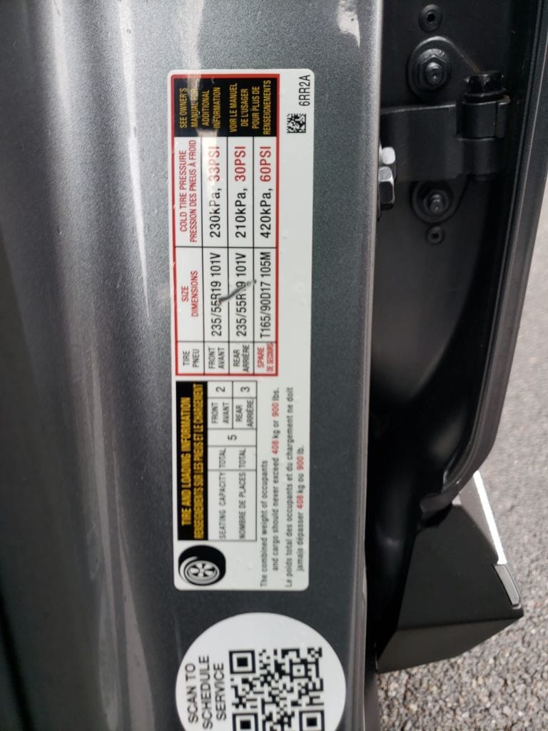 - Front tires: 235/55VR19.0