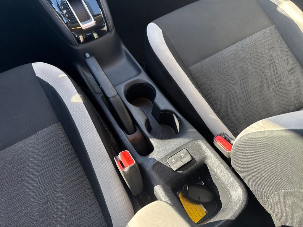 16" Alloy Wheels, 4 Speakers, ABS brakes, Air Conditioning, Alloy wheels, AM/FM radio: SiriusXM, Apple CarPlay/Android Auto, Auto High-beam Headlights, Blind Spot Warning, Brake assist, Bumpers: body-color, Carpeted Floor Mats & Trunk Mat (5-Piece Set), Driver door bin, Driver vanity mirror, Dual front impact airbags, Dual front side impact airbags, Electronic Stability Control, Front anti-roll bar, Front Bucket Seats, Front reading lights, Front wheel independent suspension, Fully automatic headlights, Heated door mirrors, Illuminated entry, Knee airbag, Low tire pressure warning, Occupant sensing airbag, Outside temperature display, Overhead airbag, Panic alarm, Passenger door bin, Passenger vanity mirror, Power door mirrors, Power steering, Power windows, Radio data system, Radio: AM/FM Audio System, Rear side impact airbag, Rear window defroster, Remote keyless entry, Speed control, Split folding rear seat, Steering wheel mounted audio controls, Tachometer, Telescoping steering wheel, Tilt steering wheel, Traction control, Trip computer, Turn signal indicator mirrors, Upgraded Cloth Seat Trim, and Variably intermittent wipers.