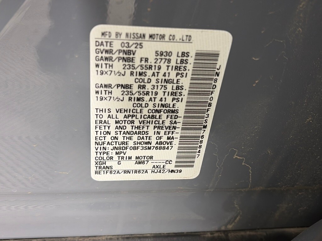 AWD, Apple CarPlay®, WiFi Hotspot, Navigation, Blind Spot Alert, Back-Up Camera, Lane Keeping Assist, Adaptive Cruise Control, Heated Driver Seat, Heated 2nd Row, XM Radio, AUX Port, Bluetooth®, Aluminum Wheels, Keyless Start. Rear Spoiler, MP3 Player, Smart Phone Integration, Privacy Glass, Keyless Entry. Nissan ENGAGE+ with Boulder Gray Pearl/Black Diamond Pearl exterior and Charcoal interior features a Electric Motor.