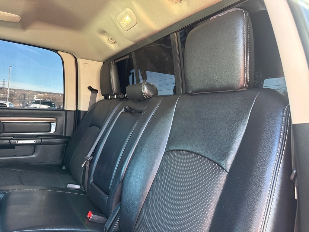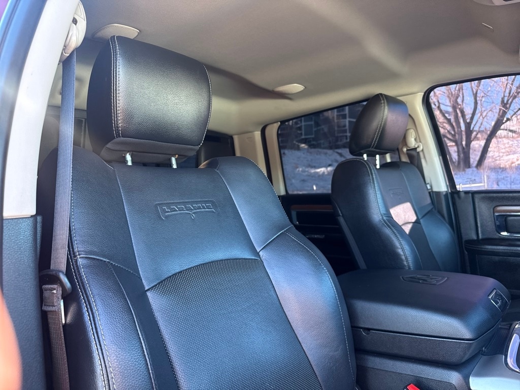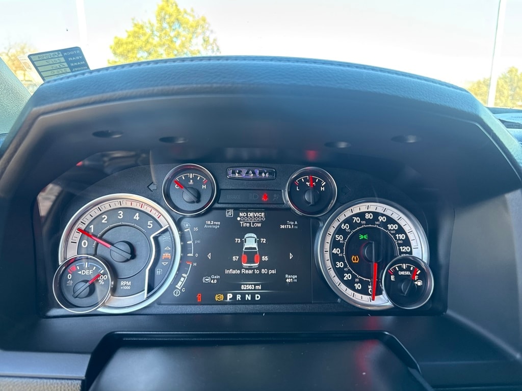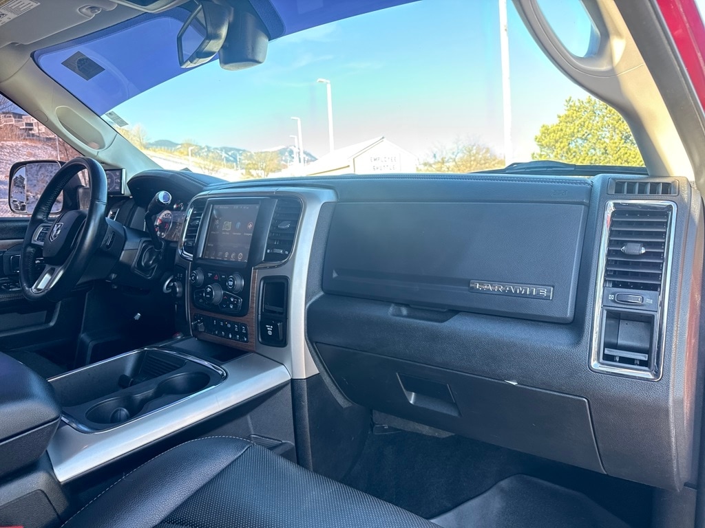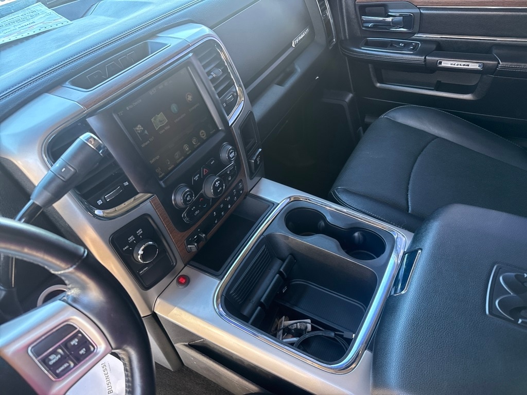 Quick Order Package 2FH Laramie (Front Armrest w/Cupholders), Sport Appearance Group (Bi-Function Black Projector Headlamp, Black Painted Exterior Mirrors, Black Power Fold-Away Mirrors, Black Premium Tail Lamp, Black Ram Head Tailgate Badge, Black Wheel Center Hub, Body Color Door Handles, Body Color Grille w/Black Wave Insert, Flat Black 4x4 Badge, Flat Black Ram 2500 Badge, Painted Front Bumper, Painted Rear Bumper, and Wheels: 20" x 8.0" Black Painted Aluminum), 1 Year Trial (Registration Required), 10 Speakers, 115V Auxiliary Power Outlet, 180 Amp Alternator, 4-Wheel Disc Brakes, 5-Year SiriusXM Traffic Service, 5-Year SiriusXM Travel Link Service, 5th Wheel/Gooseneck Towing Prep Group, 8.4" Touchscreen Display, ABS brakes, Air Conditioning, Air Conditioning ATC w/Dual Zone Control, Alloy wheels, AM/FM radio: SiriusXM, Audio memory, Auto-dimming door mirrors, Auto-dimming Rear-View mirror, Automatic temperature control, Black MIC Exterior Mirrors, Black Tubular Side Steps, Brake assist, Bumpers: chrome, Compass, Delay-off headlights, Driver door bin, Driver vanity mirror, Dual front impact airbags, Dual front side impact airbags, Electronic Stability Control, Emergency communication system: Uconnect Access, Exterior Mirrors Courtesy Lamps, Exterior Mirrors w/Heating Element, Exterior Mirrors w/Memory, Exterior Mirrors w/Supplemental Signals, For Details Visit DriveUconnect.com, Front anti-roll bar, Front Center Armrest w/Storage, Front dual zone A/C, Front fog lights, Front reading lights, Fully automatic headlights, Garage door transmitter, GPS Antenna Input, GPS Navigation, HD Radio, Heated door mirrors, Heated Front Seats, Heated front seats, Heated steering wheel, Illuminated entry, Integrated Voice Command w/Bluetooth, Keyless Enter-N-Go, Leather steering wheel, Leather Trim 40/20/40 Bench Seat, Low tire pressure warning, Media Hub (2 USB, AUX), Media Hub (USB, AUX), Memory seat, Occupant sensing airbag, Outside temperature display, Overhead airbag, Overhead console, Panic alarm, ParkView Rear Back-Up Camera, Passenger door bin, Passenger vanity mirror, Power door mirrors, Power driver seat, Power Fold Black Trailer Tow Mirror w/Memory, Power Folding Mirrors, Power passenger seat, Power steering, Power windows, Radio data system, Radio: Uconnect 3C Nav w/8.4" Display, Radio: Uconnect 3C w/8.4" Display, Rear seat center armrest, Rear step bumper, Rear Window Defroster, Remote keyless entry, Remote Proximity Keyless Entry, Remote Start System, Security system, SiriusXM Satellite Radio, SiriusXM Traffic, SiriusXM Travel Link, Speed control, Split folding rear seat, Spray In Bedliner, Steering wheel mounted audio controls, Tachometer, Tilt steering wheel, Traction control, Trailer Tow Mirrors, Trip computer, Turn signal indicator mirrors, Uconnect Access, Variably intermittent wipers, Vendor Painted Cargo Box Tracking, Ventilated front seats, Voltmeter, and Wheels: 18" x 8.0" Polished AluminuM.