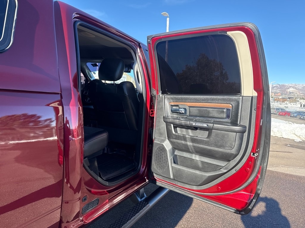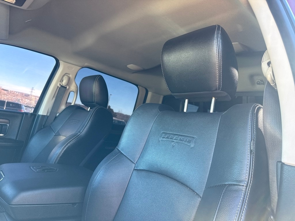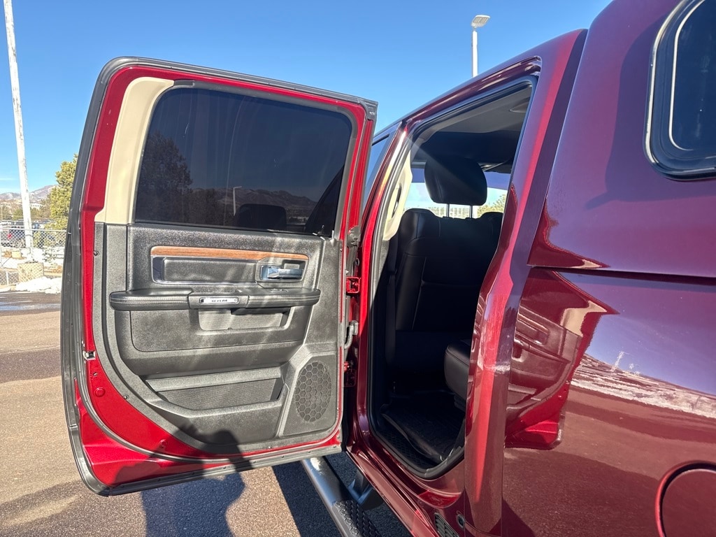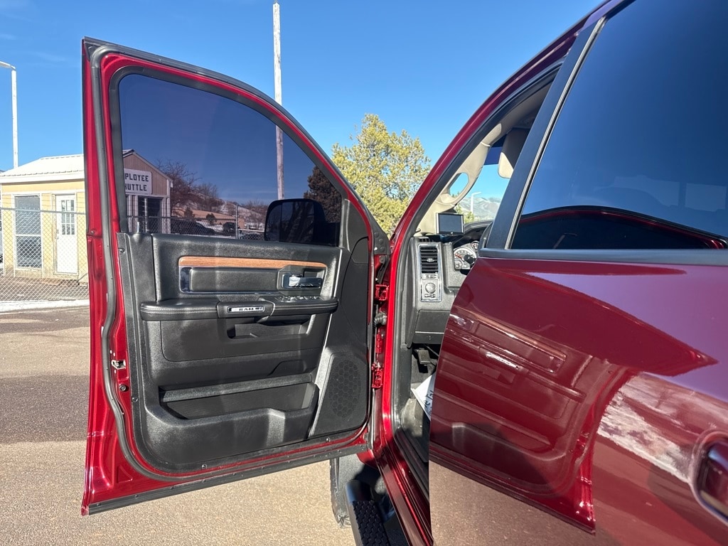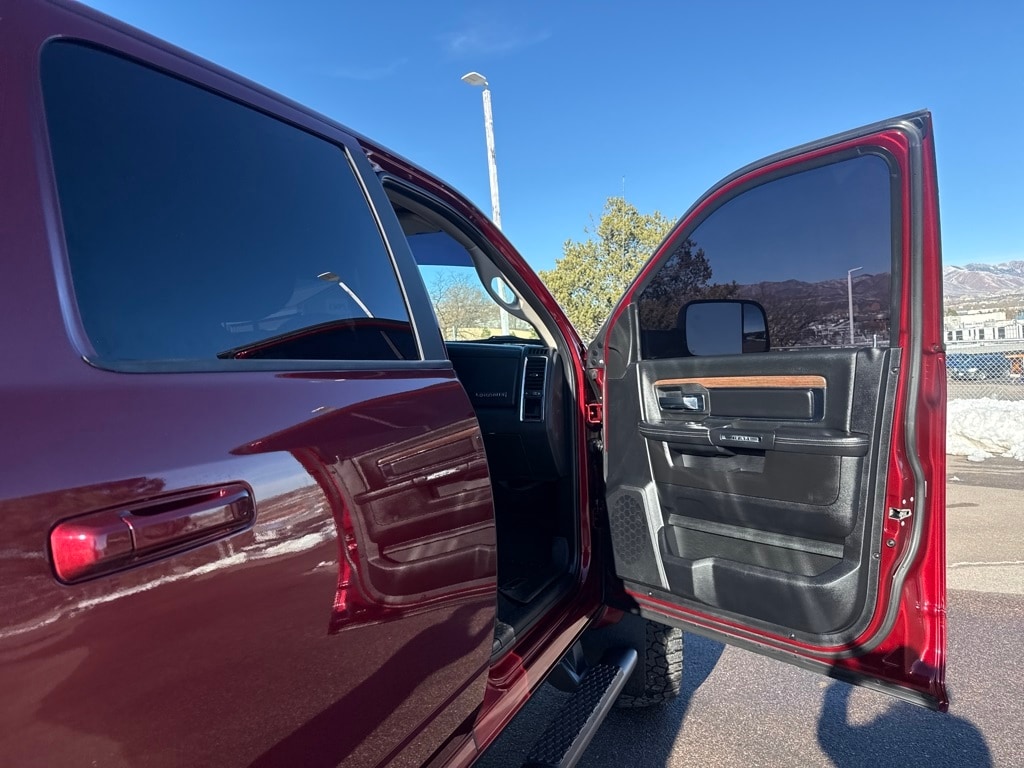 Quick Order Package 2FH Laramie (Front Armrest w/Cupholders), Sport Appearance Group (Bi-Function Black Projector Headlamp, Black Painted Exterior Mirrors, Black Power Fold-Away Mirrors, Black Premium Tail Lamp, Black Ram Head Tailgate Badge, Black Wheel Center Hub, Body Color Door Handles, Body Color Grille w/Black Wave Insert, Flat Black 4x4 Badge, Flat Black Ram 2500 Badge, Painted Front Bumper, Painted Rear Bumper, and Wheels: 20" x 8.0" Black Painted Aluminum), 1 Year Trial (Registration Required), 10 Speakers, 115V Auxiliary Power Outlet, 180 Amp Alternator, 4-Wheel Disc Brakes, 5-Year SiriusXM Traffic Service, 5-Year SiriusXM Travel Link Service, 5th Wheel/Gooseneck Towing Prep Group, 8.4" Touchscreen Display, ABS brakes, Air Conditioning, Air Conditioning ATC w/Dual Zone Control, Alloy wheels, AM/FM radio: SiriusXM, Audio memory, Auto-dimming door mirrors, Auto-dimming Rear-View mirror, Automatic temperature control, Black MIC Exterior Mirrors, Black Tubular Side Steps, Brake assist, Bumpers: chrome, Compass, Delay-off headlights, Driver door bin, Driver vanity mirror, Dual front impact airbags, Dual front side impact airbags, Electronic Stability Control, Emergency communication system: Uconnect Access, Exterior Mirrors Courtesy Lamps, Exterior Mirrors w/Heating Element, Exterior Mirrors w/Memory, Exterior Mirrors w/Supplemental Signals, For Details Visit DriveUconnect.com, Front anti-roll bar, Front Center Armrest w/Storage, Front dual zone A/C, Front fog lights, Front reading lights, Fully automatic headlights, Garage door transmitter, GPS Antenna Input, GPS Navigation, HD Radio, Heated door mirrors, Heated Front Seats, Heated front seats, Heated steering wheel, Illuminated entry, Integrated Voice Command w/Bluetooth, Keyless Enter-N-Go, Leather steering wheel, Leather Trim 40/20/40 Bench Seat, Low tire pressure warning, Media Hub (2 USB, AUX), Media Hub (USB, AUX), Memory seat, Occupant sensing airbag, Outside temperature display, Overhead airbag, Overhead console, Panic alarm, ParkView Rear Back-Up Camera, Passenger door bin, Passenger vanity mirror, Power door mirrors, Power driver seat, Power Fold Black Trailer Tow Mirror w/Memory, Power Folding Mirrors, Power passenger seat, Power steering, Power windows, Radio data system, Radio: Uconnect 3C Nav w/8.4" Display, Radio: Uconnect 3C w/8.4" Display, Rear seat center armrest, Rear step bumper, Rear Window Defroster, Remote keyless entry, Remote Proximity Keyless Entry, Remote Start System, Security system, SiriusXM Satellite Radio, SiriusXM Traffic, SiriusXM Travel Link, Speed control, Split folding rear seat, Spray In Bedliner, Steering wheel mounted audio controls, Tachometer, Tilt steering wheel, Traction control, Trailer Tow Mirrors, Trip computer, Turn signal indicator mirrors, Uconnect Access, Variably intermittent wipers, Vendor Painted Cargo Box Tracking, Ventilated front seats, Voltmeter, and Wheels: 18" x 8.0" Polished AluminuM.