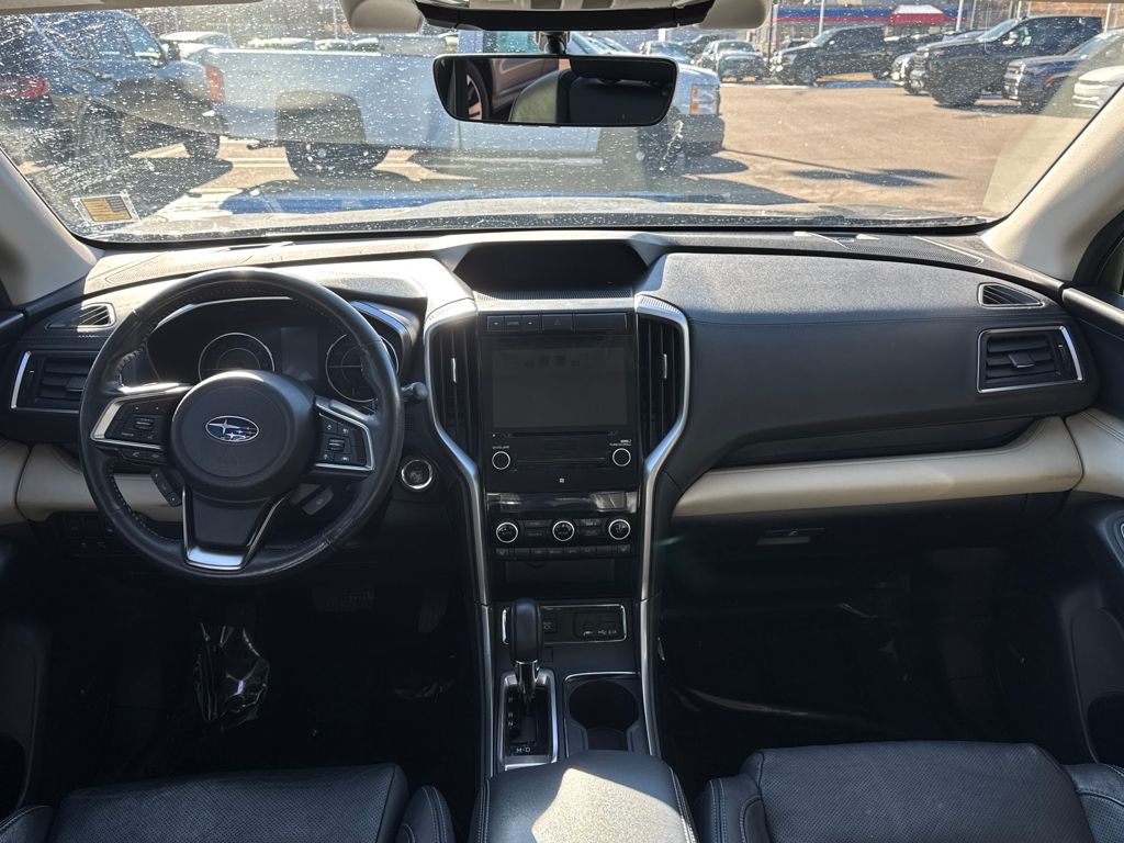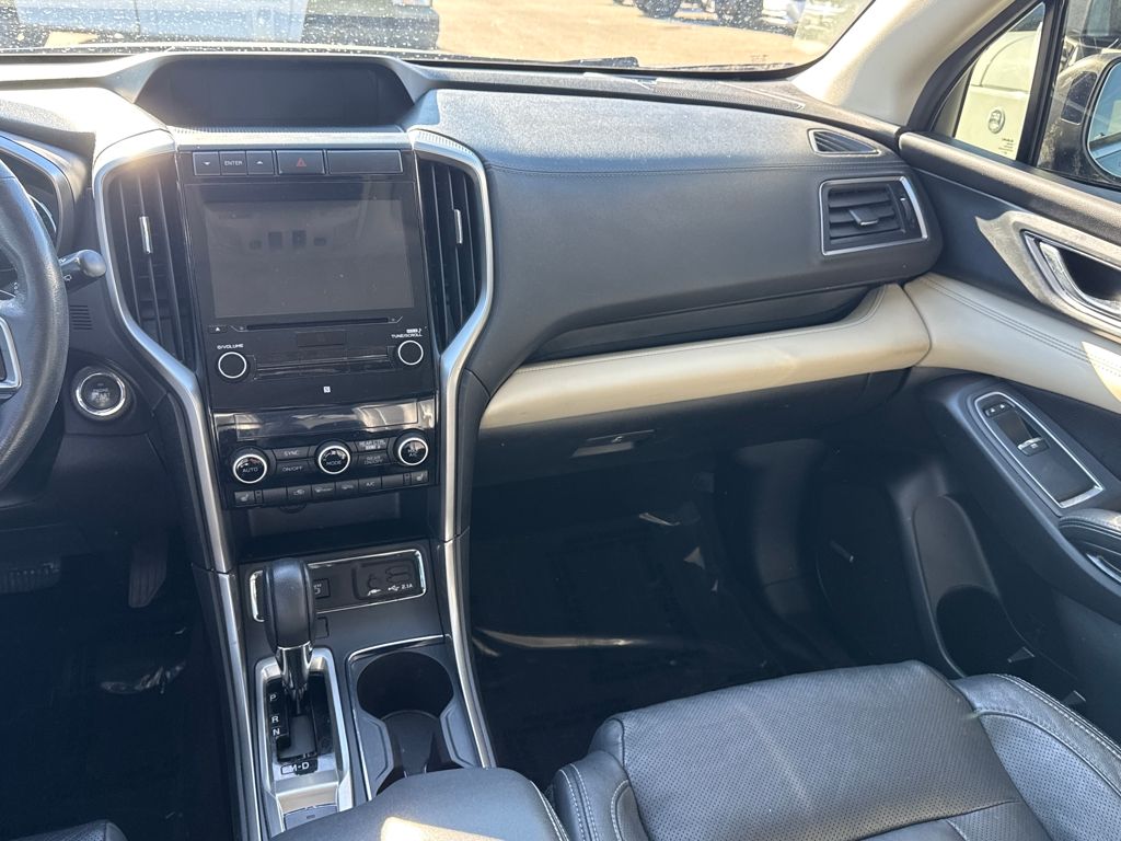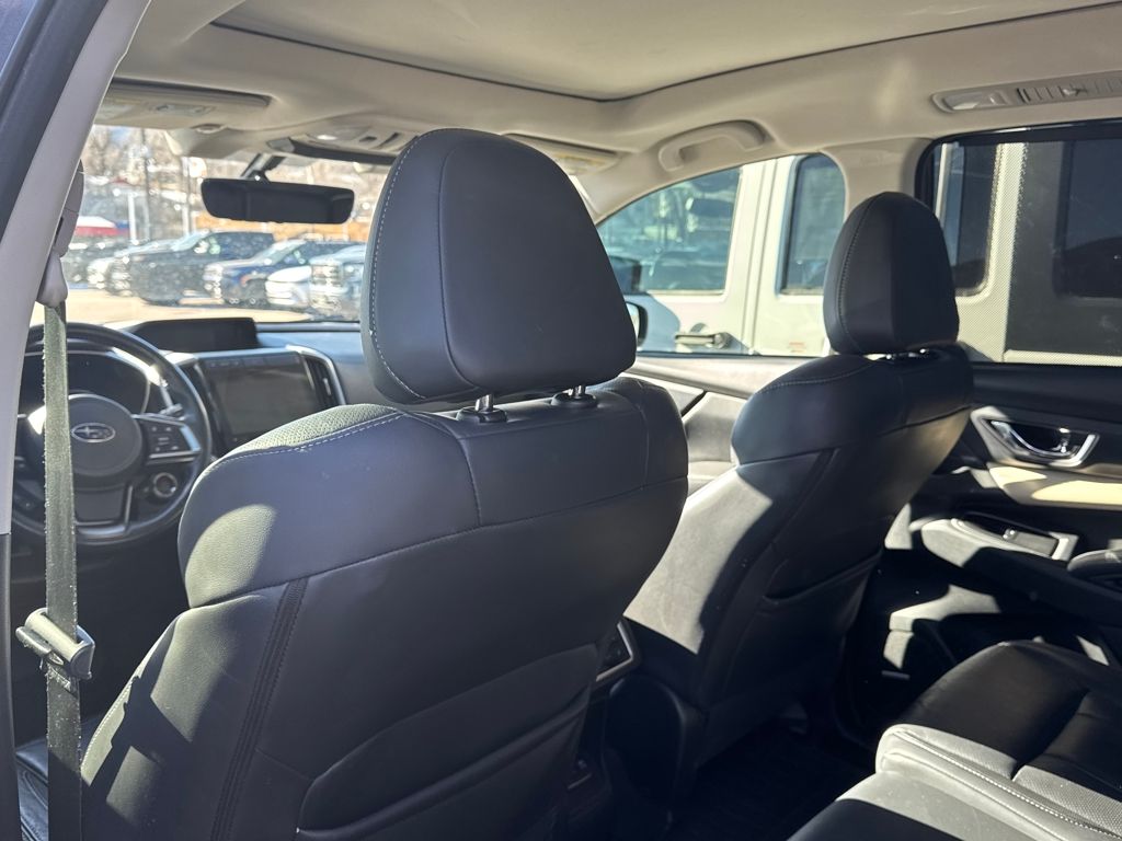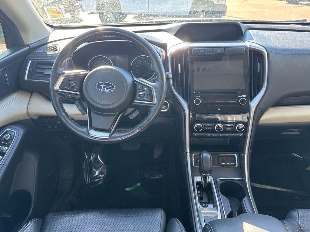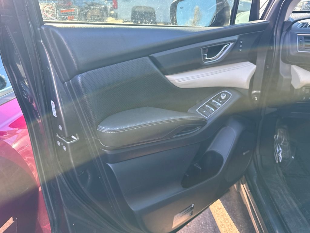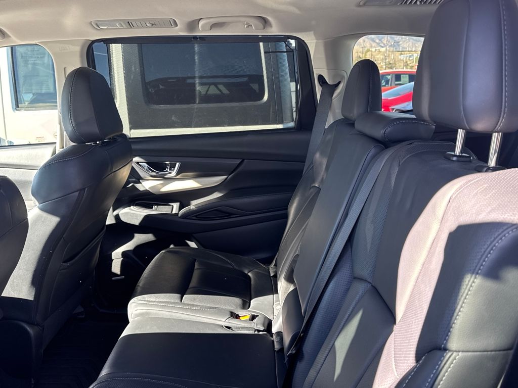 Harman kardon & Moonroof & Nav & Cargo Area Cover (Cargo Area Cover, Dual Glass Panoramic Power Moonroof, and Radio: Subaru STARLINK 8.0" Multimedia Nav System), 20" Alloy Wheels, 3rd row seats: bench, 4-Wheel Disc Brakes, 6 Speakers, ABS brakes, Air Conditioning, All-Weather Floor Liners, Alloy wheels, AM/FM radio: SiriusXM, Auto High-beam Headlights, Auto-Dimming Exterior Mirror w/Approach Light, Auto-dimming Rear-View mirror, Automatic temperature control, Axle Ratio: 4.44, Brake assist, Bumpers: body-color, CD player, Compass, Delay-off headlights, Driver door bin, Driver vanity mirror, Dual front impact airbags, Dual front side impact airbags, Electronic Stability Control, Emergency communication system: STARLINK Safety and Security, Exterior Parking Camera Rear, Four wheel independent suspension, Front anti-roll bar, Front Bucket Seats, Front Center Armrest, Front dual zone A/C, Front fog lights, Front reading lights, Fully automatic headlights, Garage door transmitter: HomeLink, Heated door mirrors, Heated Front Bucket Seats, Heated front seats, Heated rear seats, Heated steering wheel, Illuminated entry, Knee airbag, Low tire pressure warning, Map & Reading Lights LED Upgrade - 6 Bulb Kit, Memory seat, Occupant sensing airbag, Outside temperature display, Overhead airbag, Overhead console, Panic alarm, Passenger door bin, Passenger vanity mirror, Perforated Leather-Trimmed Upholstery, Power door mirrors, Power driver seat, Power Liftgate, Power passenger seat, Power steering, Power windows, Radio data system, Radio: Subaru STARLINK 8.0" Multimedia Plus System, Rear air conditioning, Rear anti-roll bar, Rear Bumper Cover, Rear reading lights, Rear seat center armrest, Rear window defroster, Rear window wiper, Remote keyless entry, Roof rack: rails only, Security system, Speed control, Splash Guards, Split folding rear seat, Spoiler, STARLINK/Apple CarPlay/Android Auto, Steering wheel mounted audio controls, Tachometer, Telescoping steering wheel, Tilt steering wheel, Traction control, Trip computer, and Variably intermittent wipers.