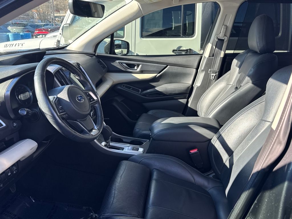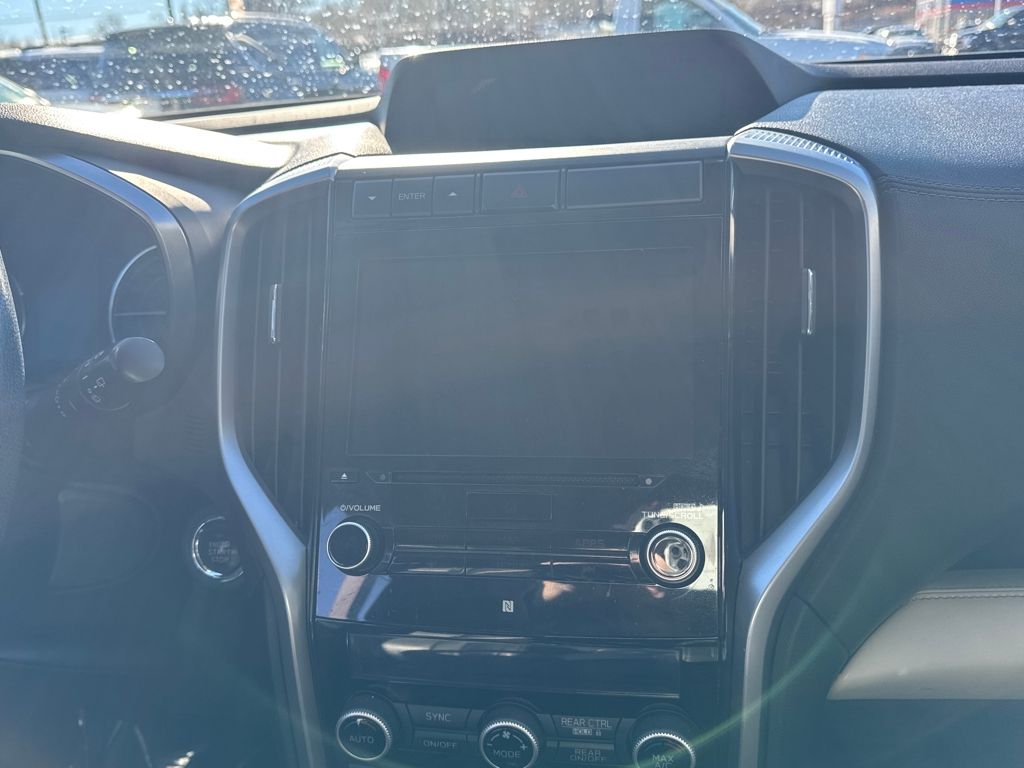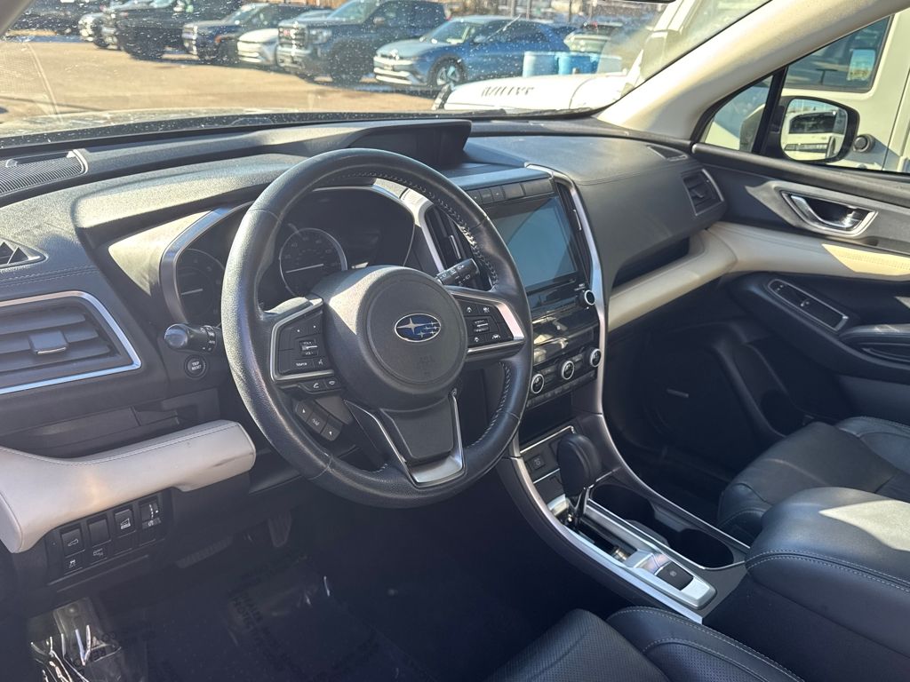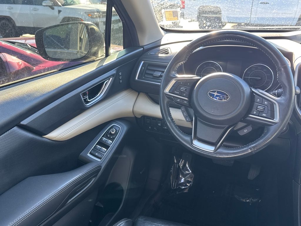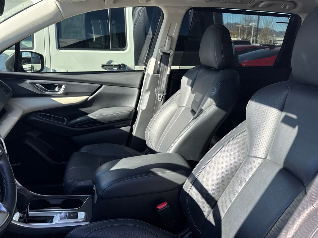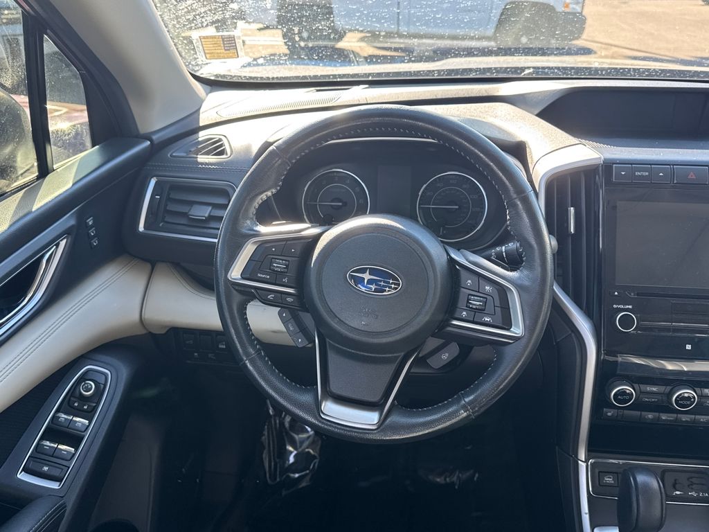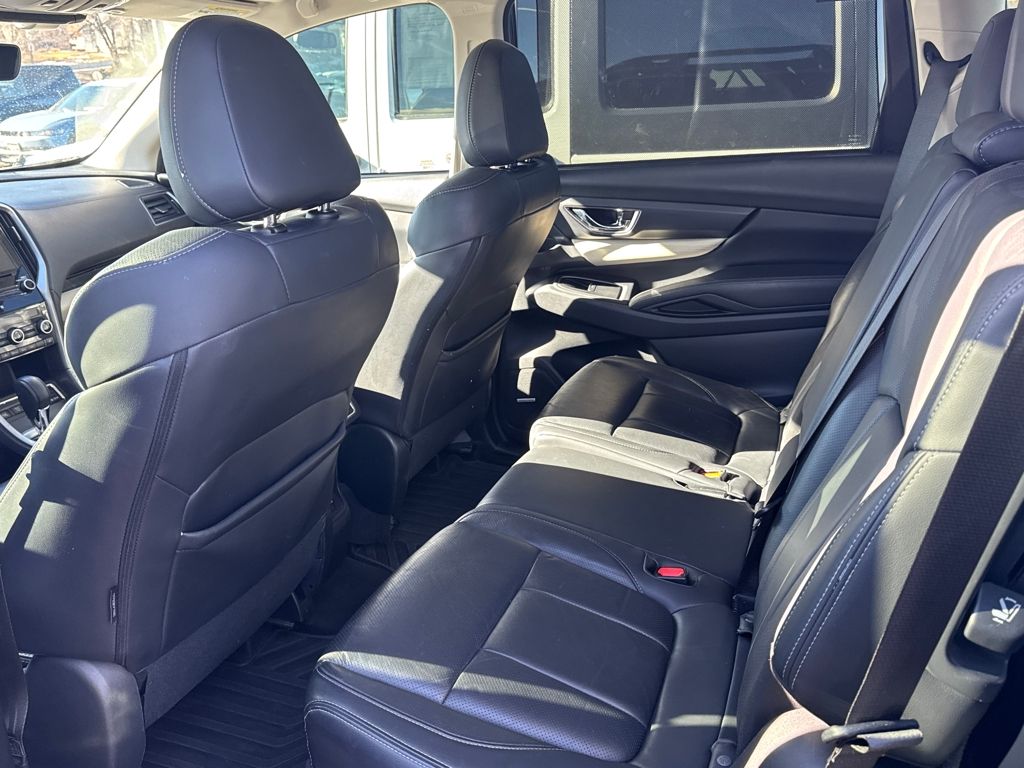 Harman kardon & Moonroof & Nav & Cargo Area Cover (Cargo Area Cover, Dual Glass Panoramic Power Moonroof, and Radio: Subaru STARLINK 8.0" Multimedia Nav System), 20" Alloy Wheels, 3rd row seats: bench, 4-Wheel Disc Brakes, 6 Speakers, ABS brakes, Air Conditioning, All-Weather Floor Liners, Alloy wheels, AM/FM radio: SiriusXM, Auto High-beam Headlights, Auto-Dimming Exterior Mirror w/Approach Light, Auto-dimming Rear-View mirror, Automatic temperature control, Axle Ratio: 4.44, Brake assist, Bumpers: body-color, CD player, Compass, Delay-off headlights, Driver door bin, Driver vanity mirror, Dual front impact airbags, Dual front side impact airbags, Electronic Stability Control, Emergency communication system: STARLINK Safety and Security, Exterior Parking Camera Rear, Four wheel independent suspension, Front anti-roll bar, Front Bucket Seats, Front Center Armrest, Front dual zone A/C, Front fog lights, Front reading lights, Fully automatic headlights, Garage door transmitter: HomeLink, Heated door mirrors, Heated Front Bucket Seats, Heated front seats, Heated rear seats, Heated steering wheel, Illuminated entry, Knee airbag, Low tire pressure warning, Map & Reading Lights LED Upgrade - 6 Bulb Kit, Memory seat, Occupant sensing airbag, Outside temperature display, Overhead airbag, Overhead console, Panic alarm, Passenger door bin, Passenger vanity mirror, Perforated Leather-Trimmed Upholstery, Power door mirrors, Power driver seat, Power Liftgate, Power passenger seat, Power steering, Power windows, Radio data system, Radio: Subaru STARLINK 8.0" Multimedia Plus System, Rear air conditioning, Rear anti-roll bar, Rear Bumper Cover, Rear reading lights, Rear seat center armrest, Rear window defroster, Rear window wiper, Remote keyless entry, Roof rack: rails only, Security system, Speed control, Splash Guards, Split folding rear seat, Spoiler, STARLINK/Apple CarPlay/Android Auto, Steering wheel mounted audio controls, Tachometer, Telescoping steering wheel, Tilt steering wheel, Traction control, Trip computer, and Variably intermittent wipers.