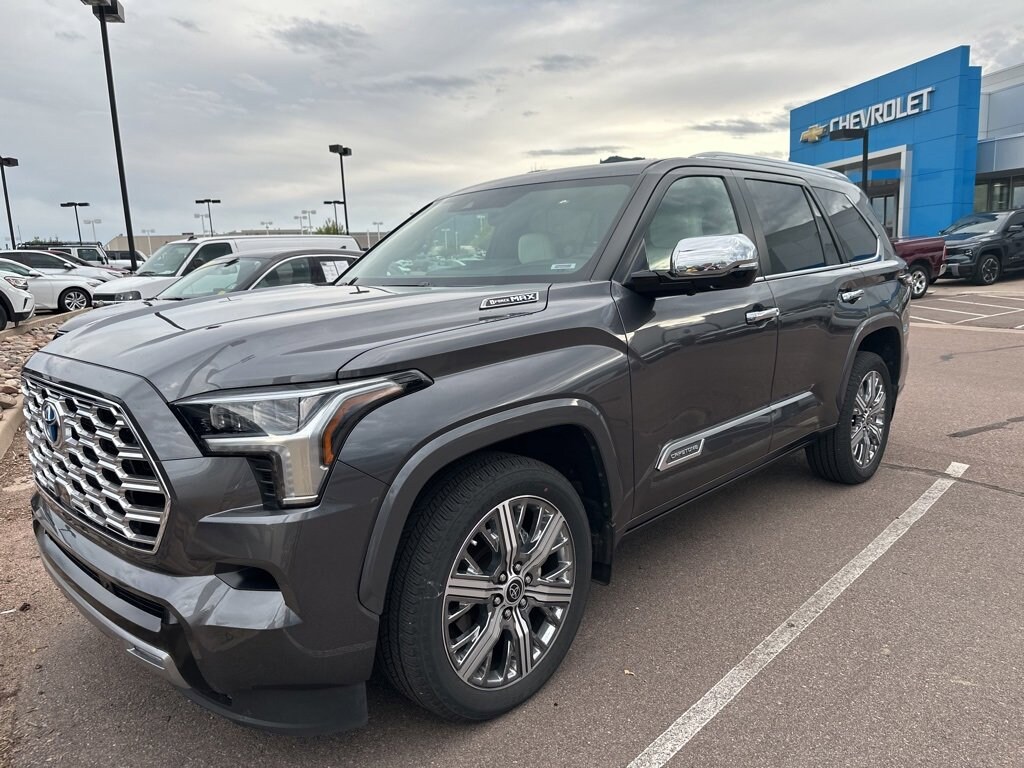 THIS VEHICLE IS LOCATED AT DANIELS LONG CHEVROLET 670 AUTOMOTIVE DR 80905,PLEASE CALL (719)228-3500, 4D Sport Utility, V6 Hybrid, 10-Speed Automatic, 4WD, Gray, ABS brakes, Active Cruise Control, Alloy wheels, Automatic Power Extending Running Boards, Capstone, Compass, Electronic Stability Control, Front dual zone A/C, Head Up Display (HUD), Heated & Ventilated Front Seats, Heated door mirrors, Heated front seats, Heated Power Auto-Dimming Outside Mirrors, Heated rear seats, Illuminated entry, Low tire pressure warning, Navigation System, Power Liftgate, Power moonroof, Remote keyless entry, Semi-Aniline Leather Seat Trim, Traction control.Recent Arrival!Gray 2024 Toyota Sequoia Capstone 4WD 10-Speed Automatic V6 Hybrid