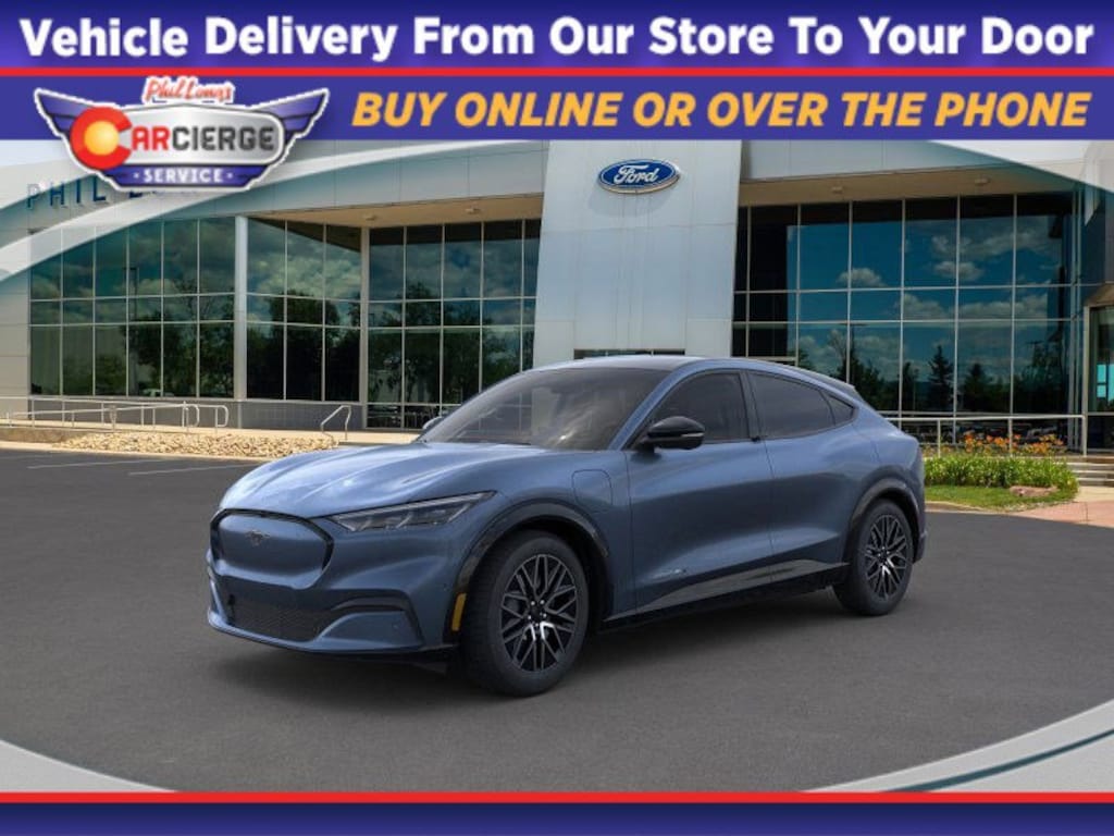 PANORAMIC FIXED-GLASS ROOF infrared reflective (IRR) windshield, TRANSMISSION: SINGLE SPEED (STD). Ford Premium with Vapor Blue exterior and Black Onyx interior features a Electric Motor.